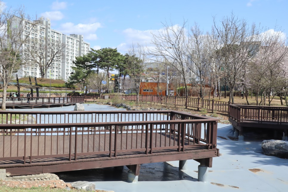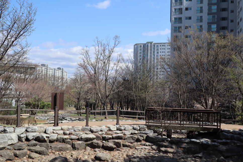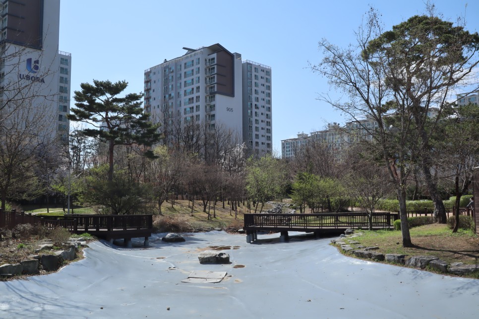 아직은 나무들이 겨울의 옷을 입은 것들도 많지만 봄의 기운이 완연한 것들도 함께 볼 수가 있더라구요. 이곳은 공원을 따라서 일부 구간은 물이 흐르게 해 놓은 곳들도 있는데 역시 물은 하나도 보이지가 않았지요.