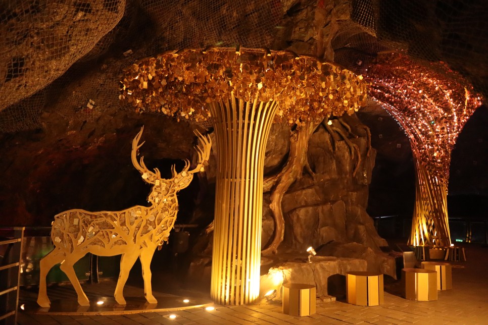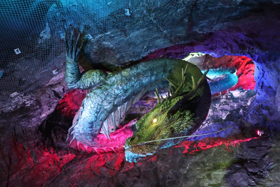 동굴을 따라 이동을 하다 보면 여러 가지 모양으로 만들어진 조형물들도 여럿 볼 수가 있습니다. 동굴의 모습은 자연 동굴이 아니니 동굴 자체에 대한 느낌은 크게 없는 상태지만 조명 시설은 정말 잘 되어 있는 곳입니다.