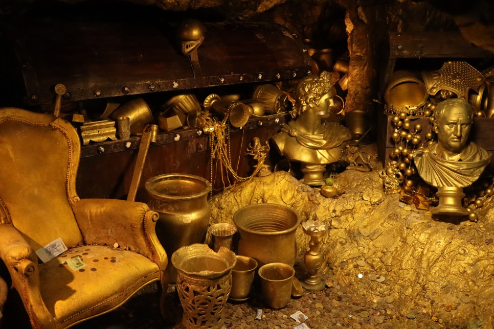 바로 앞에 황금의방이라는 작은 동굴이 있는데 황금으로 만든 여러 가지 귀중품들이 많이 있는 곳이네요. 실제로 이곳에 진짜 돈을 던져서 부를 기원하기도 한다고 합니다.
