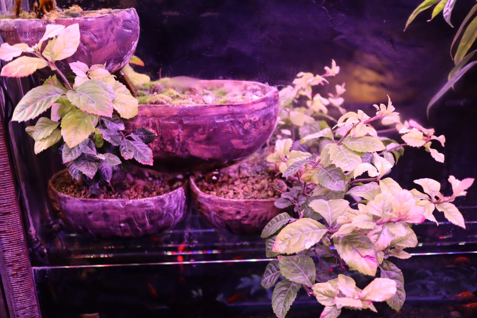 나오는 길에는 작은 식물원도 있는데 물고기의 배설물을 영양분으로 하고 LED 불빛으로 자란다고 하네요.