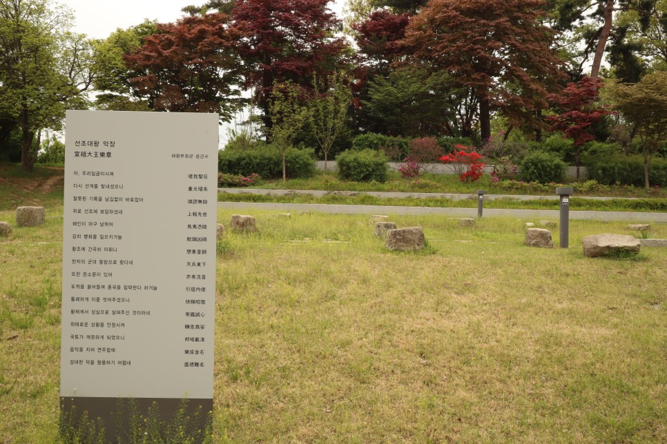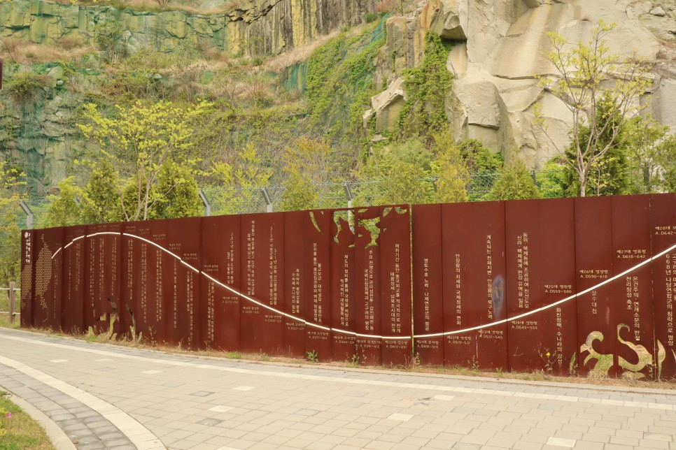 그런데 바위 앞에 보이는 이 조형물은 무엇을 위한 것인지 알 수가 없네요. 고구려 역사의 기백을 담은 땅이라고 고구려 왕들의 계보가 적혀 있는 것이 보입니다. 고구려 시대의 보루라고 이렇게 만들어 둔 것 같은데 조금은 생뚱한 모습이네요.
