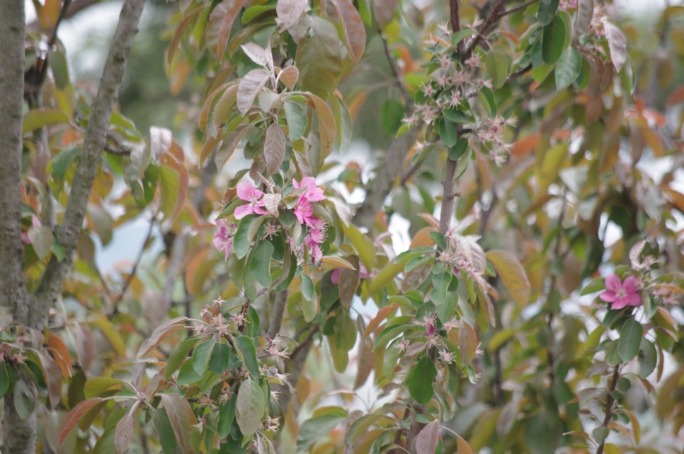돌아가는 길도 크게 다르지 않는 모습이지만 가끔은 올 때 보지 못한 것들이 있기도 하지요. 열매가 익으면 따서 술도 담아 먹는다고 하는 꽃사과나무가 몇 송이 남은 꽃잎의 흔적만 남아 있군요.