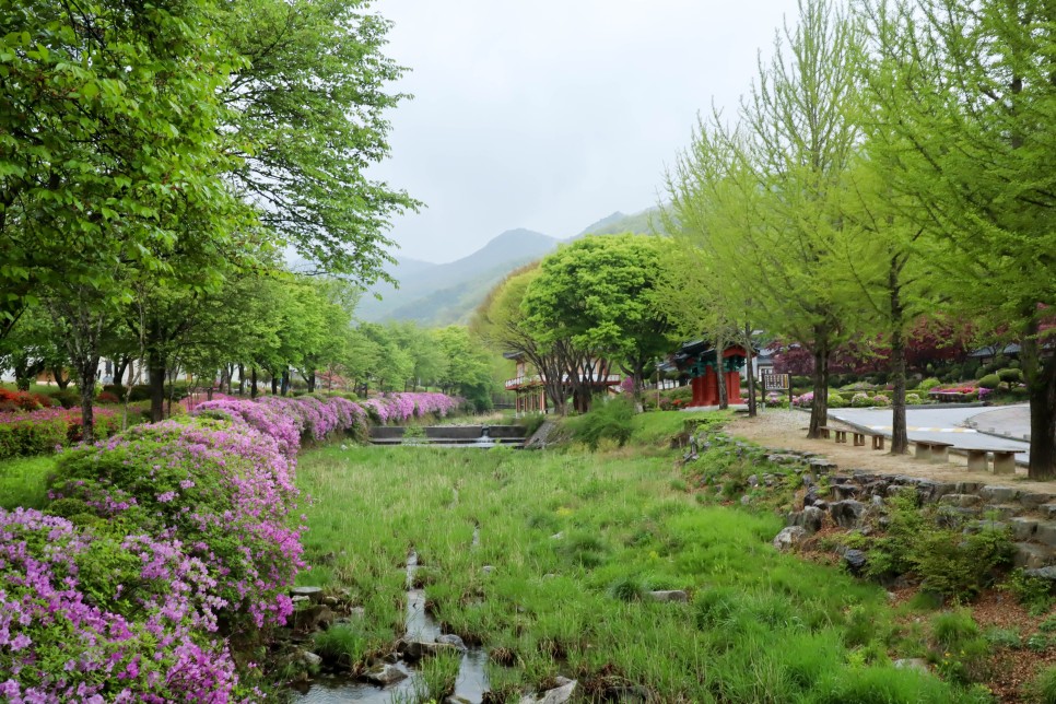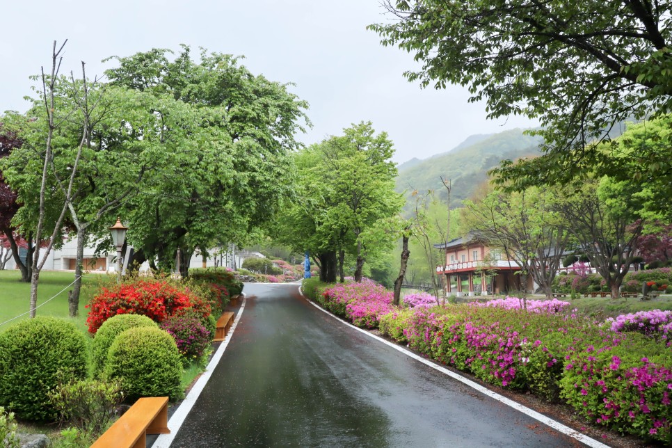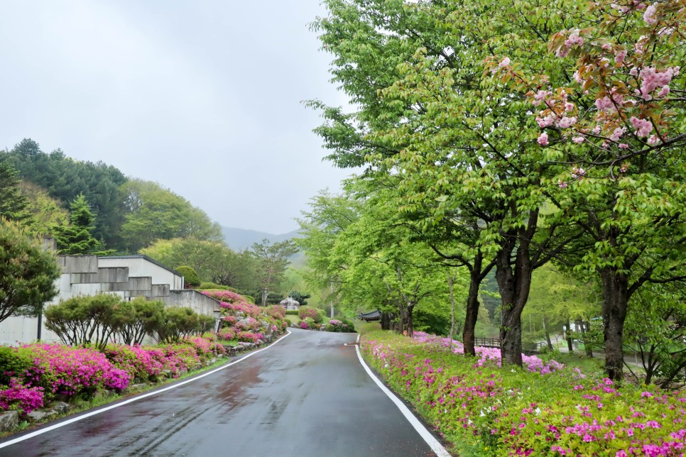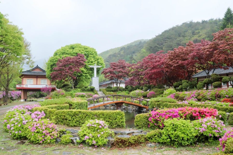 소성당으로 가는 길에는 여러 가지 색상의 철쭉들이 피어 있어서 분위기가 너무 화사해서 기분을 좋게 합니다. 약한 비가 오는 날이지만 이렇게 구경을 하기에는 나쁘지 않은 날씨 같네요.