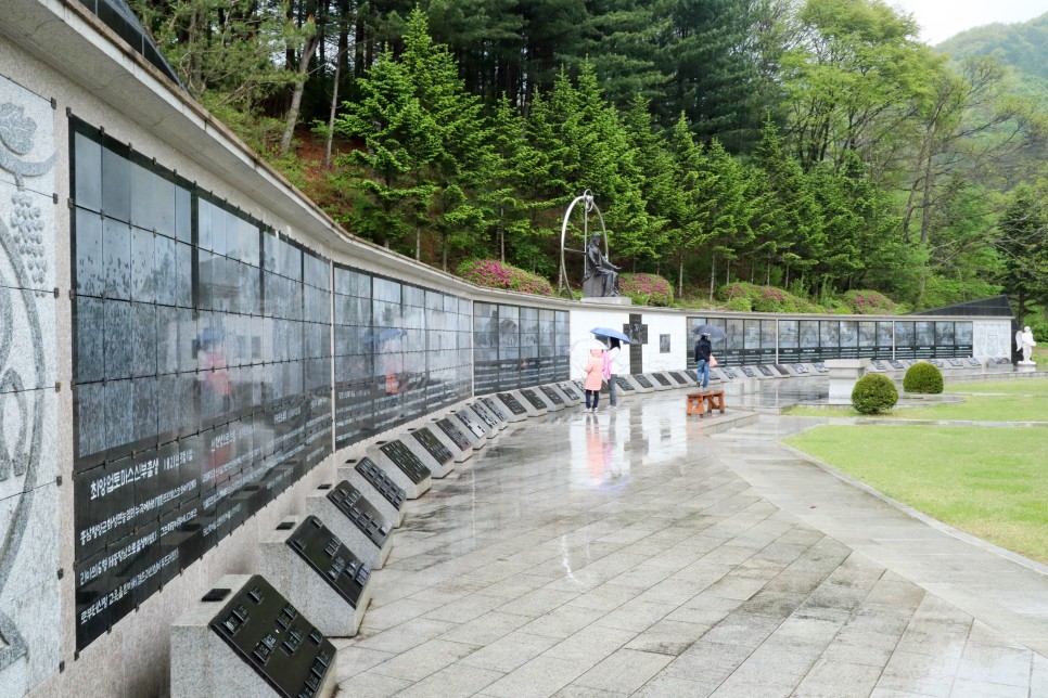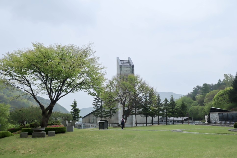 이곳이 최양업신부조각공원 입구입니다. 조각이 많지는 않지만 나무들과 꽃들이 많이 보이는 곳이라 분위기는 좋은 곳이네요.