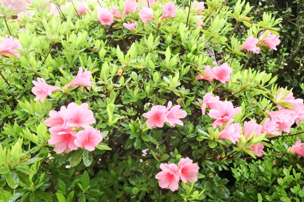 철쭉 중에서 이 분홍색의 꽃송이들이 더 눈을 사로잡는 모습입니다. 비에 젖은 것이 더 신비해 보기기까지 하는 것 같아요.