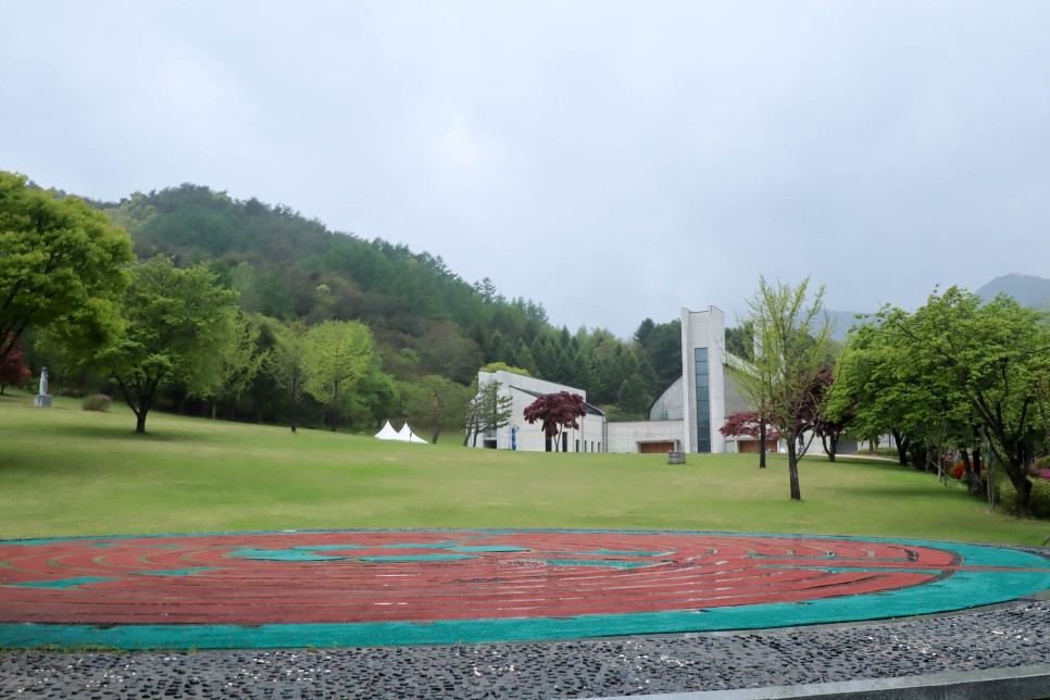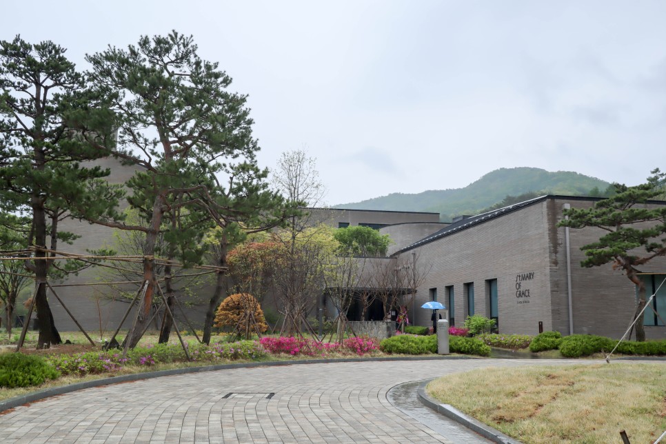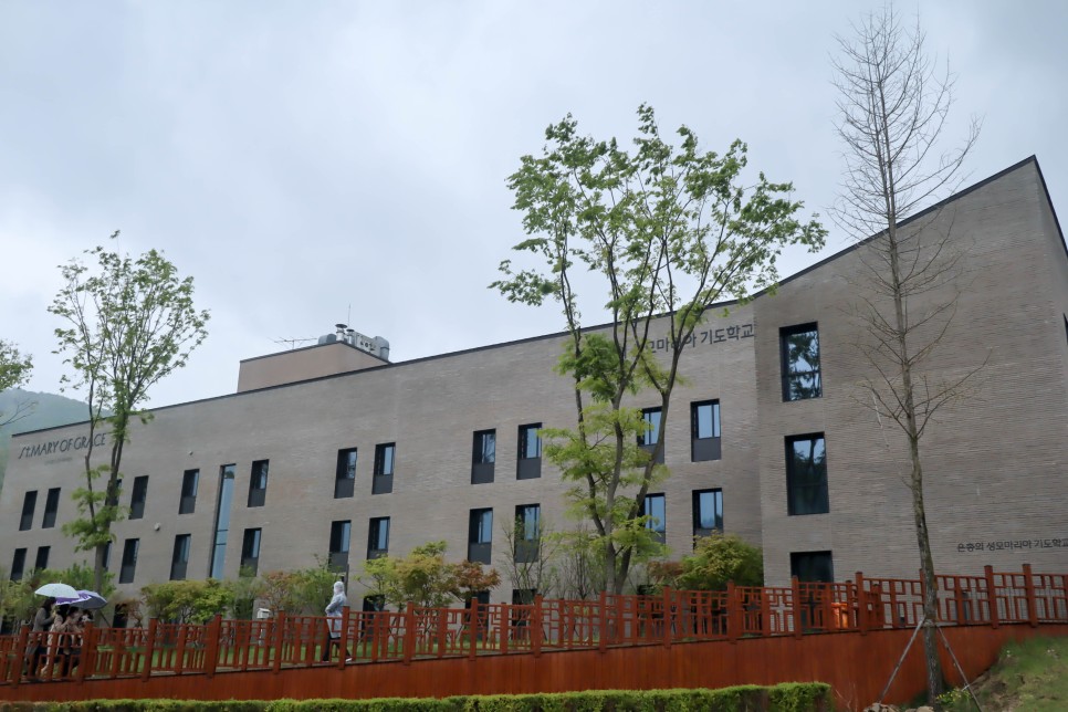 제일 먼저 주차장에서 보이는 건물은 이 은총의 성모마리아 기도학교입니다. 신도분들이 많이 찾는 곳인데 특히 이 건물로 많이 가시는 것 같더라구요.
