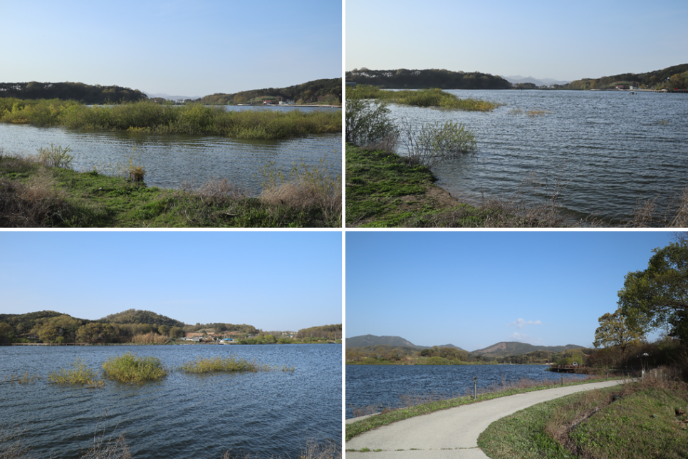 저도 이곳이 처음이라 저쪽 길은 어떻게 만들어져 있는지 궁금합니다. 저수지 안쪽으로 나무 데크가 안 보이는 걸로 보아 여기처럼 길이 있는데 아닐까 상상을 해 보고 있지요.