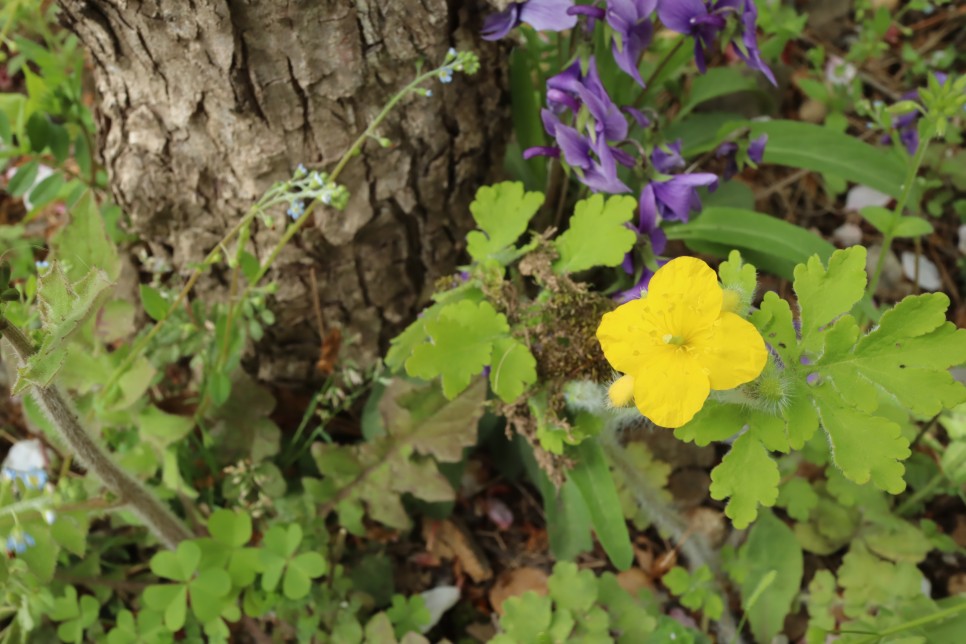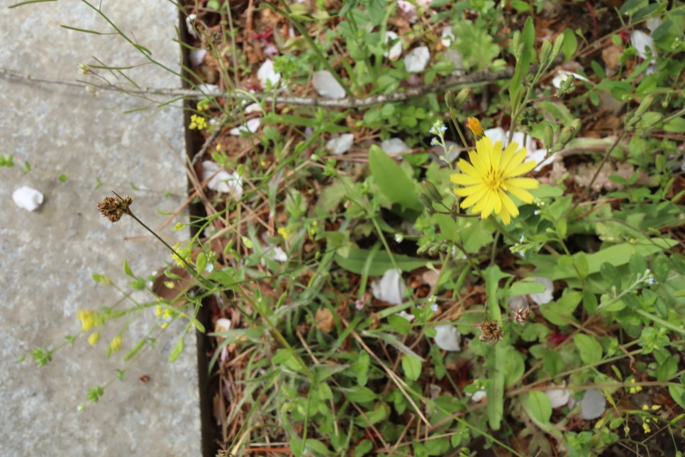 장승을 보다가 가끔은 아래를 보면 이렇게 이쁜 들꽃들이 많이 있습니다. 애기똥풀과 씀바귀이지요.