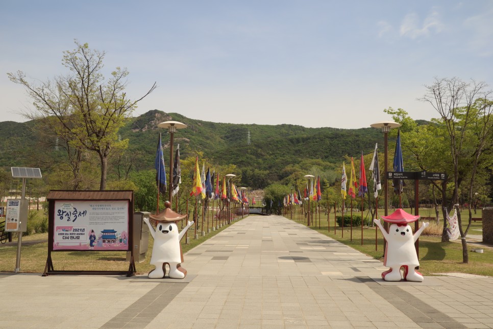 이 회암사지에서는 왕실축제라는 것도 열렸나 본데 작년에 올해 볼 것을 기약했지만 올해도 역시 내년을 기약해야 하는 상황이 되었으니 아쉽기는 합니다. 그래도 각종 깃발들이 가는 길에 세워져 있어서 잠시 그때의 신도가 된 듯 길을 따라서 걸어보아야겠습니다.