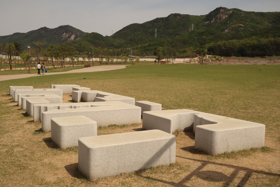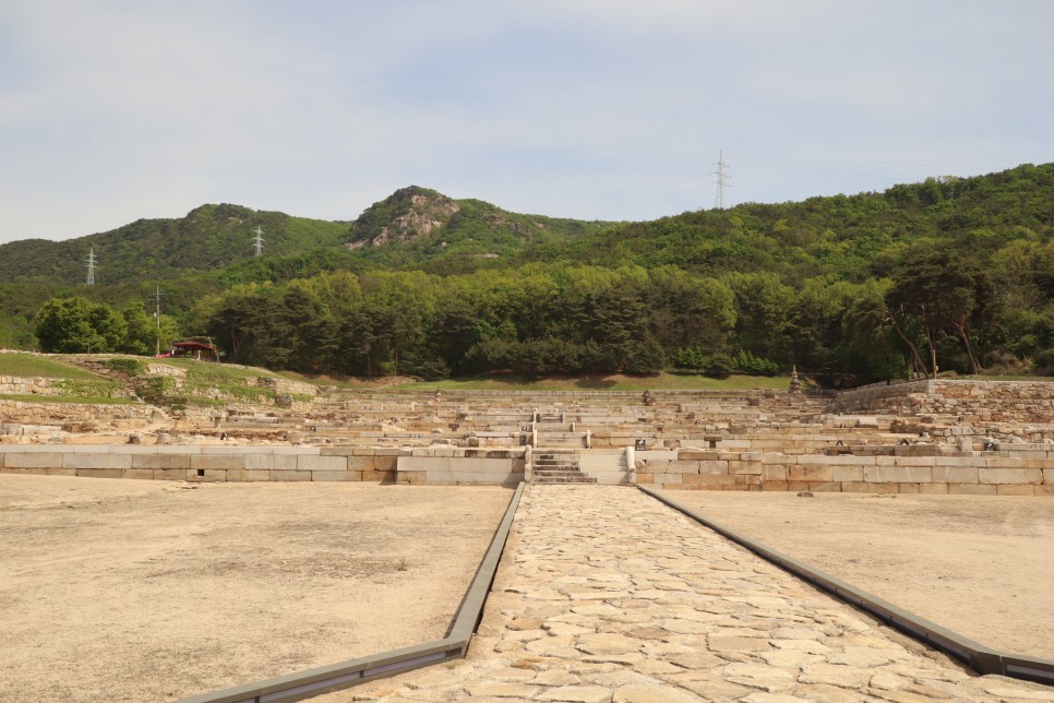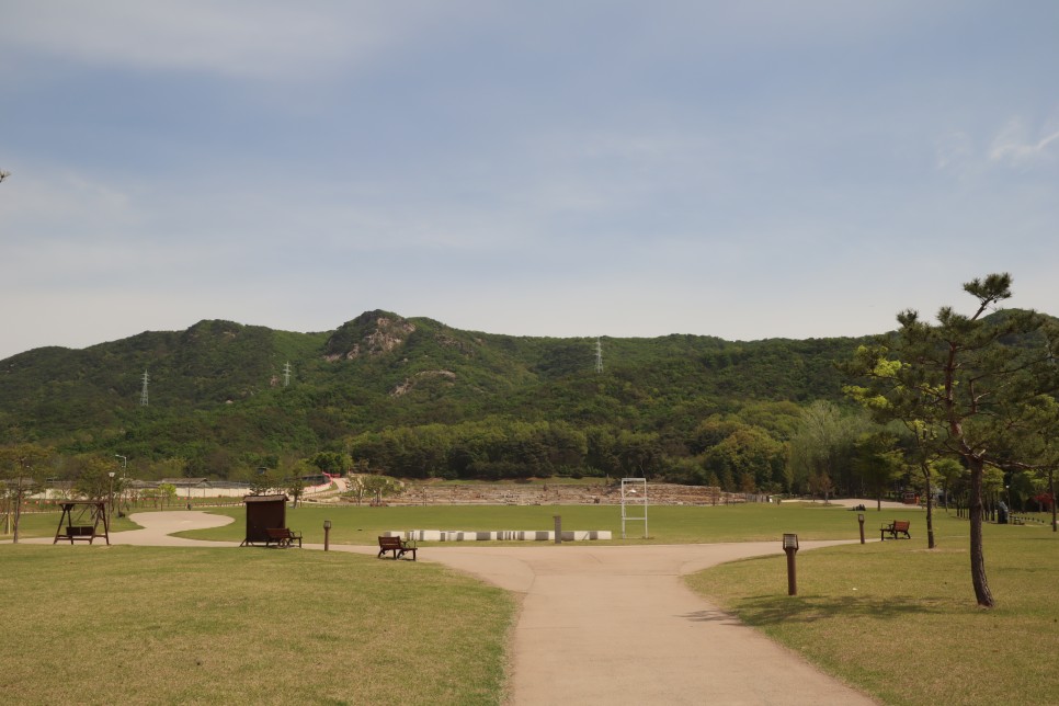 회암사지박물관을 지나서 넓은 잔디광장을 지나가고 있는데 가끔 쉼터도 보이고 작지만 나무들도 심어져 있어서 어느 왕릉에 온 듯한 느낌도 들어서 저 멀리 무엇이 있나를 가늠해 보고 있습니다.