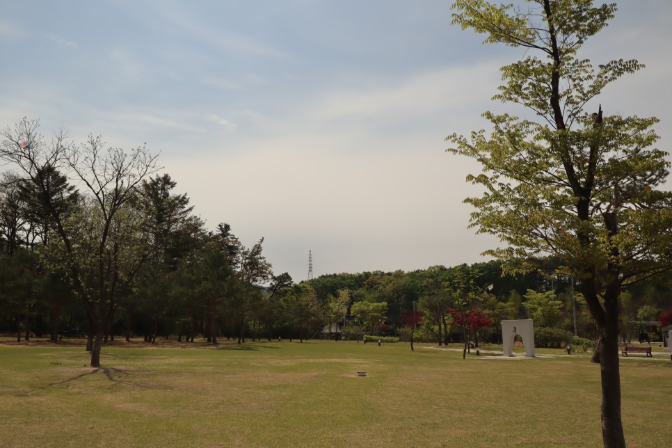아직은 이른 시간이라 사람들이 거의 보이지는 않지만 점심때를 지나면서 아이들과 함께 온 분들이 이 잔디광장 곳곳에 자리를 깔고 쉬는 모습을 볼 수가 있었습니다. 하지만 역시 나무들이 어리고 특별히 그늘이 되어 줄만한 것들이 없으니 작은 나무 아래의 작은 그늘을 이용을 하더라구요.