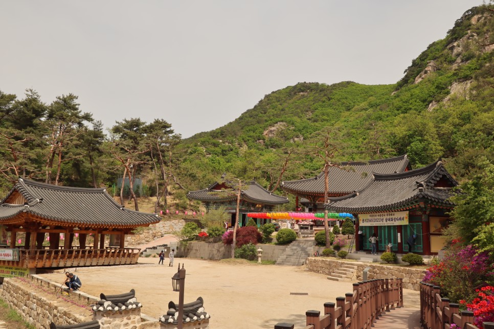 이제 구경을 끝내고 왔던 길을 돌아갑니다. 경내의 전체 모습을 한 장의 사진에 담아보는데 한적한 곳에 있는 아담한 사찰이네요.