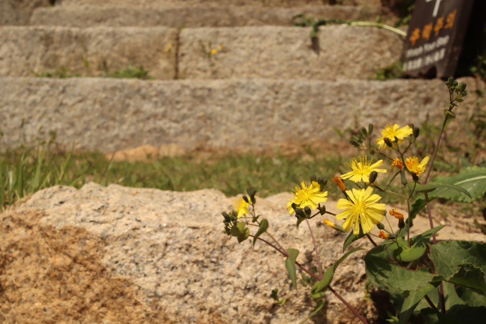 계단을 올라가는데 노란 꽃이 이쁘게 반겨주고 있습니다. 이 꽃은 잎이 줄기에 하나씩 달려있고 약간 길쭉한 모양이니 고들빼기인 모양입니다. 씀바귀와 잘 구분이 안돼서 헷갈리는 들꽃이지요.