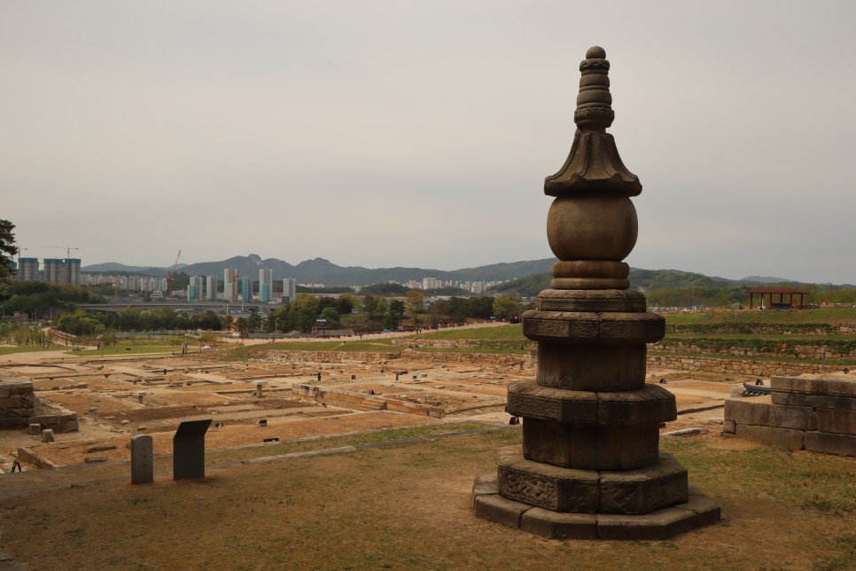 그리고 바로 옆에 지주들이 보이는데 이것들은 당간지주입니다. 중앙의 당에 깃발과 같은 불교 장엄물이 걸리는 곳으로 원래는 4개가 있어야 하는데 하나는 유실되어 없다고 합니다.