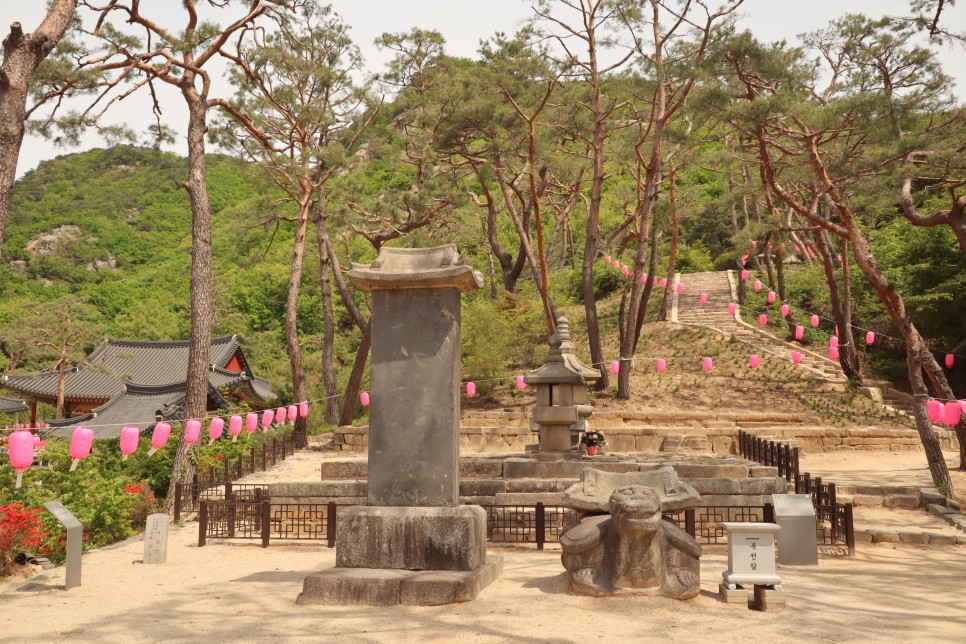 그 옆에는 쌍사자 석등이 있고 조금 아래쪽에는 무학대사비가 서 있지요.