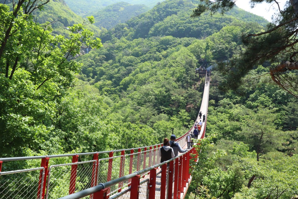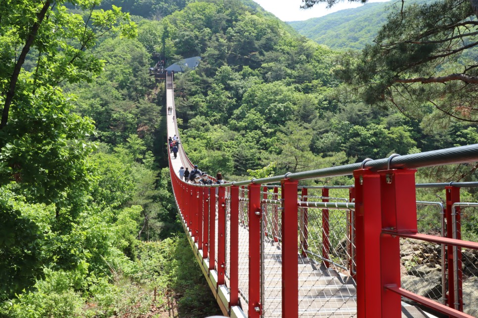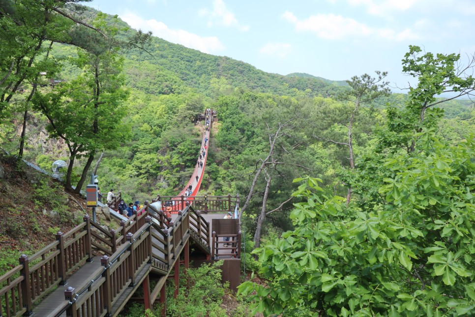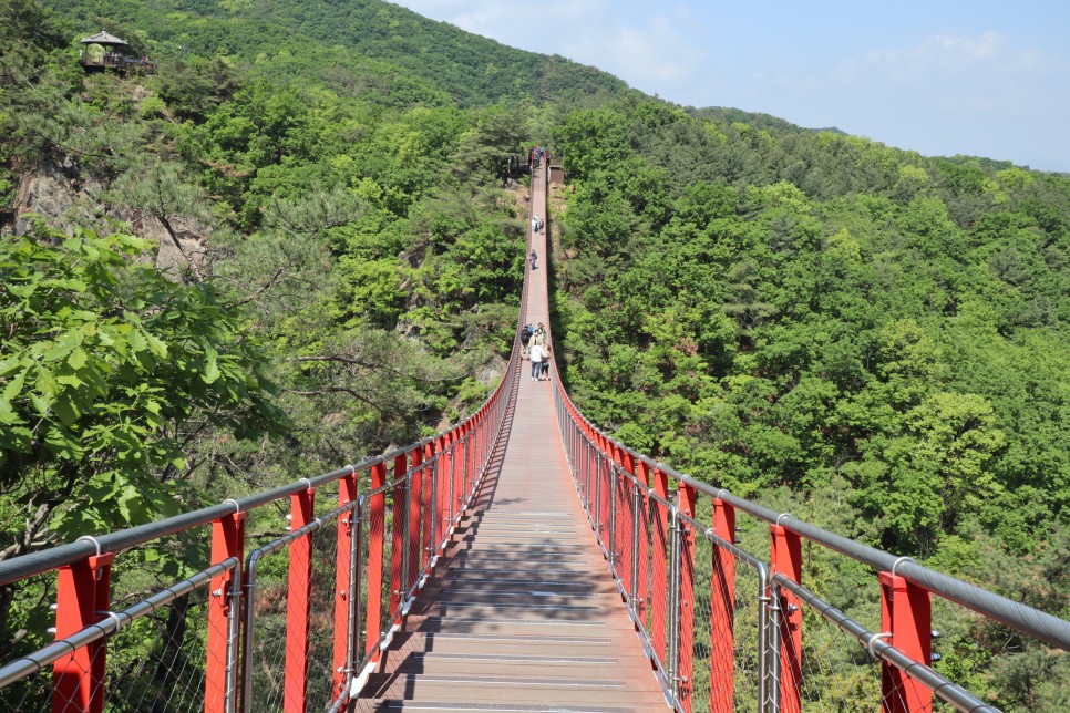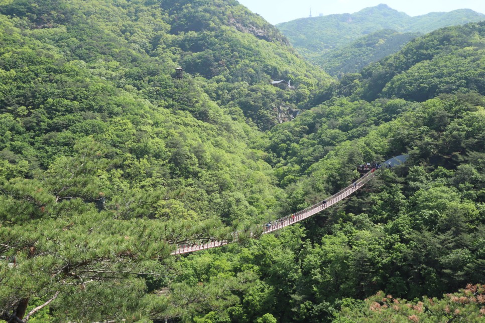 이제 반대편에 도착을 해서 감악산출렁다리의 모습을 다시 찍어봅니다. 사실 이 다리는 길이가 150미터 정도이고 높이가 45미터인데 아래로도 그냥 산이 보이는 곳이라 그렇게 무섭지가 않은 것 같아요.