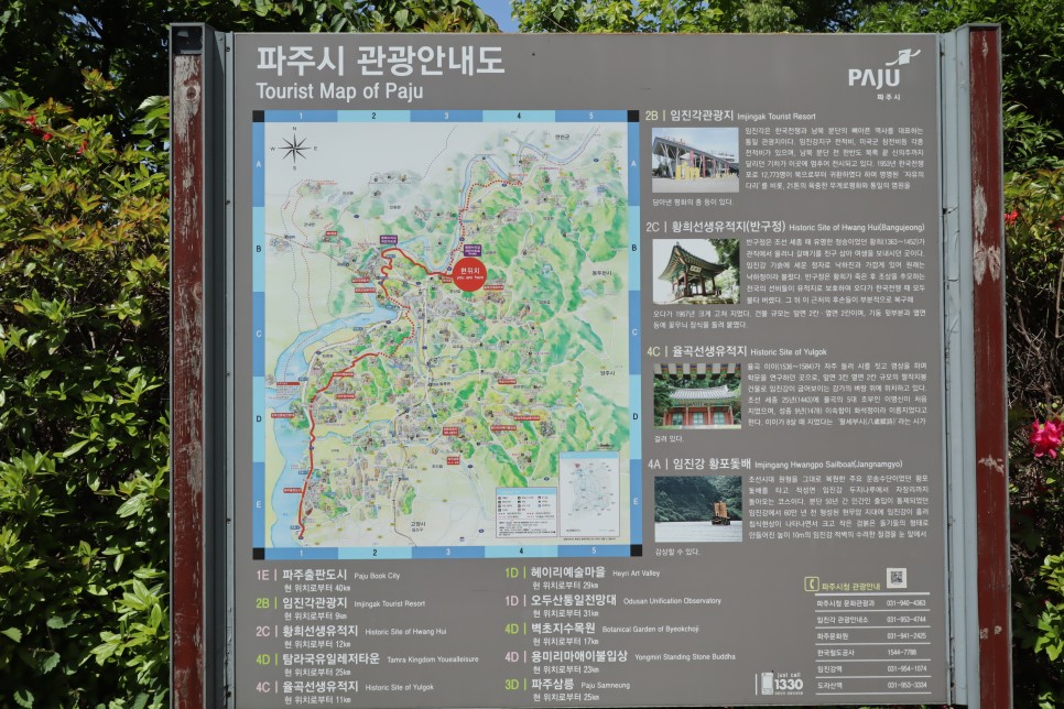 먼저 파주시 관광안내도가 있으니 참고를 하셨다가 주변에 다른 곳을 함께 구경을 하시면 좋을 것 같아요. 개인적으로는 파주출판도시, 탐라국유일레저타운, 황포돗대를 빼면 모두 가보았지요.