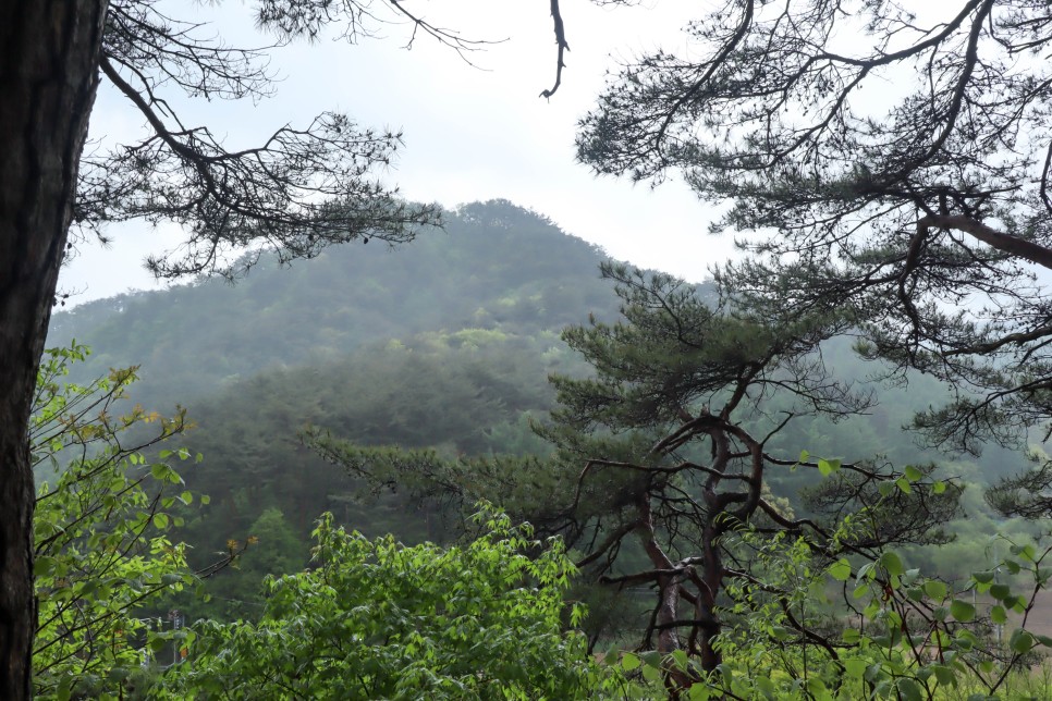 주변의 산 모습을 보고는 있지만 나무가 가려서 잘 보이지도 않습니다.
