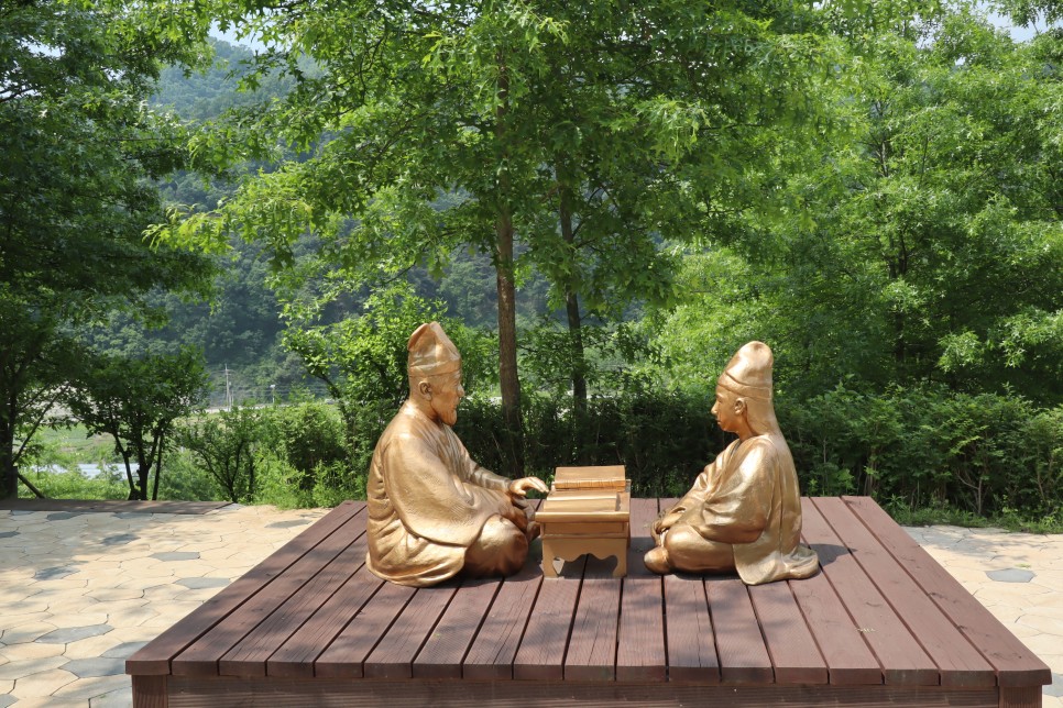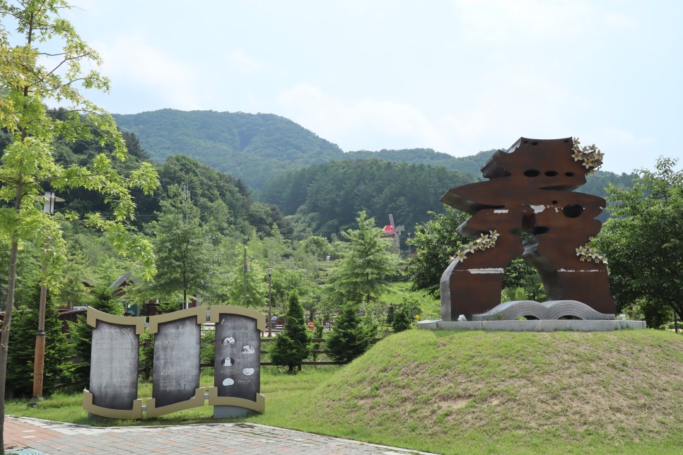 입구 오른쪽에는 이런 조형물들이 보이는데 잘 보이지는 않지만 책과 관련된 것으로 보이네요. 나중에 증평을 돌아보다 보니 김득신이라는 이름을 많이 보게 되는데 이 분은 조선 중기에 태어난 인물로 머리가 나쁘지만 노력으로 59세에 장원급제를 한 분이라고 합니다. 특히 다산 정약용도 인정할 만큼 대단한 독서광이라고 하네요.