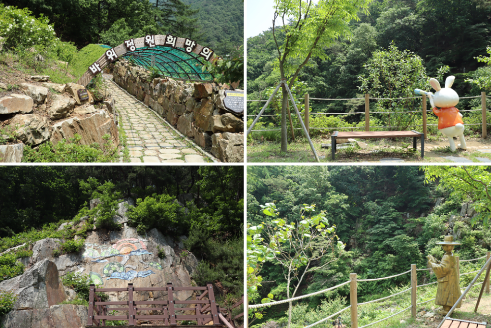 주변을 살펴보면 바위정원희망의 숲이라는 터널도 보이고 토끼와 거북이를 이용한 조형물들이 많이 있습니다.