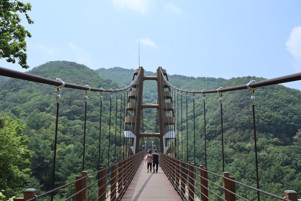 다시 한번 좌구산명상구름다리의 모습을 구경해 봅니다. 여기에서는 다리의 모습이 잘 보이는 것 같네요.