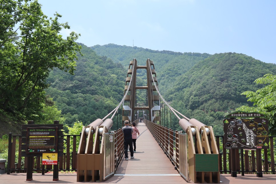 이 출렁다리의 이름은 좌구산 숲하늘 출렁다리라고 불리네요. 길이가 34m인 작은 출렁다리입니다. 일몰 이후는 출입을 금한다고 하네요.