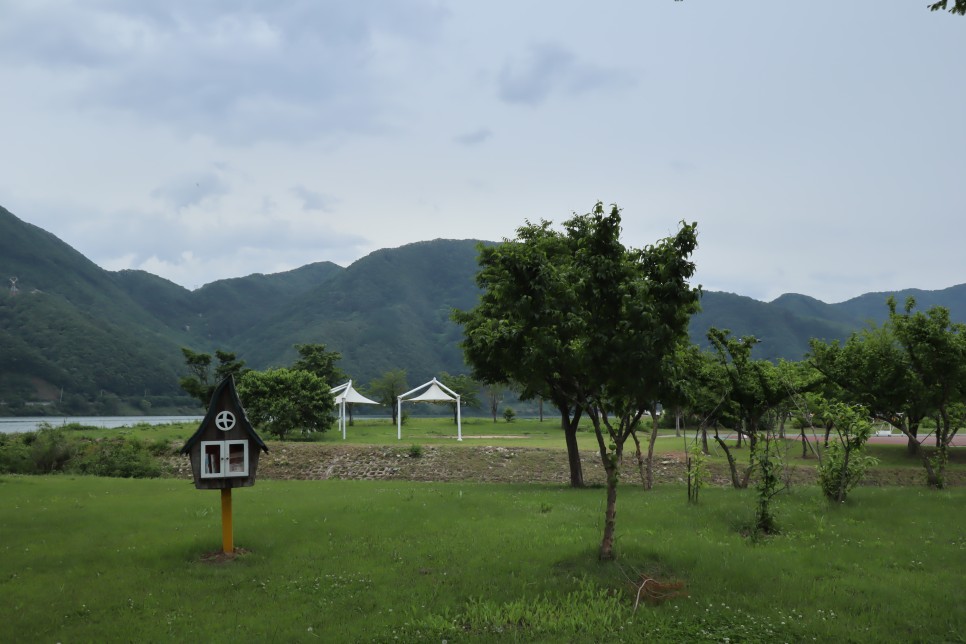 강가 쪽으로 이런 조형물도 있으니 사진을 찍거나 그네를 타는 재미도 즐기시기 바랍니다. 그런데 저 그네 올라가기가 만만치 않더라구요.