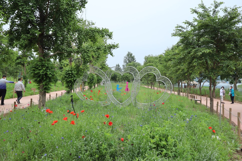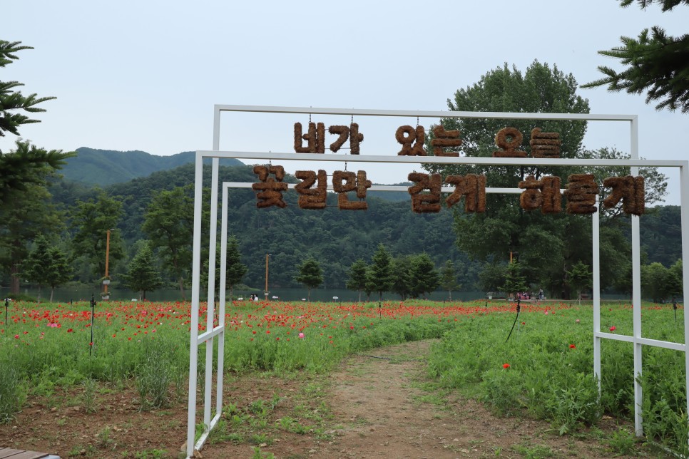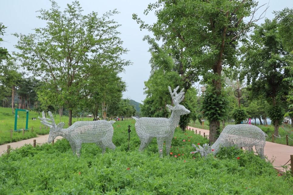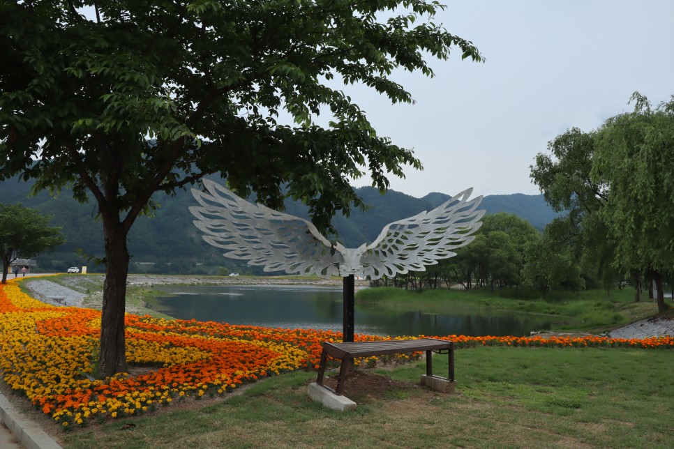 이쪽 길은 가을에는 황화모스모스나 코스모스를 많이 볼 수 있는 곳인데 이번에는 수레국화와 개양귀비꽃을 많이 심어 두었더라구요. 그리고 이런 조형물들도 많이 새로 만들어 두었네요. 이렇게 변화되는 모습을 보면 더 기분이 좋아지지요.
