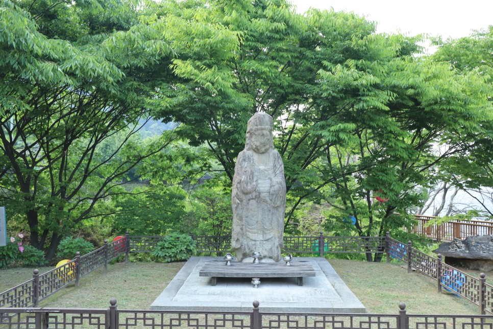가는 길에는 카페들도 가끔 있지만 이렇게 보살입상도 있는데 이것은 율리 석조관음보살입상이라고 되어 있습니다. 삼기저수지가 만들어지면서 수몰이 되는 것을 옮겨와서 세운 것이라고 하네요.