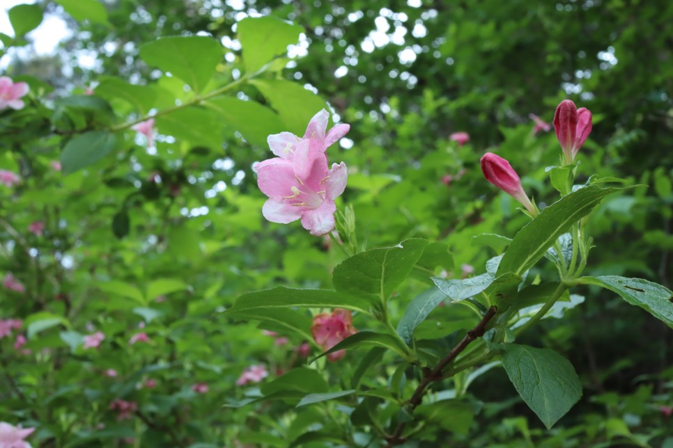 가는 길에 이쁜 병꽃나무꽃이 피어 있어서 잠시 구경을 하고 있습니다. 이 병꽃나무 꽃도 흐릿한 분홍색도 있지만 약간 붉은색과 강렬한 붉은색이 있는 것도 있어서 여러 가지더라구요.