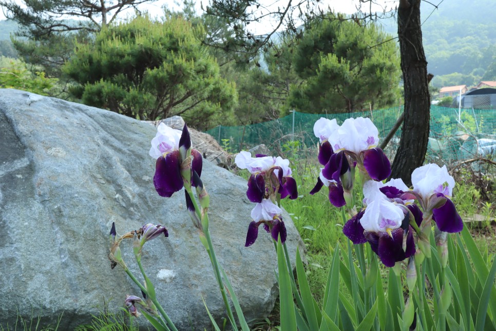 저수지 우측으로는 마을이 있는데 마을 쪽으로 이 꽃이 피어 있어서 찍어봤습니다. 색상이 좀 강렬해서 눈에 많이 들어오더라구요. 알고 봤더니 독일붓꽃이라고 합니다. 우리나라 꽃들은 보통 순박해 보이는 것들이 많은데 외국에서 들어온 것들은 색감이 강하고 큰 것들이 많은 것이 참 신기합니다.