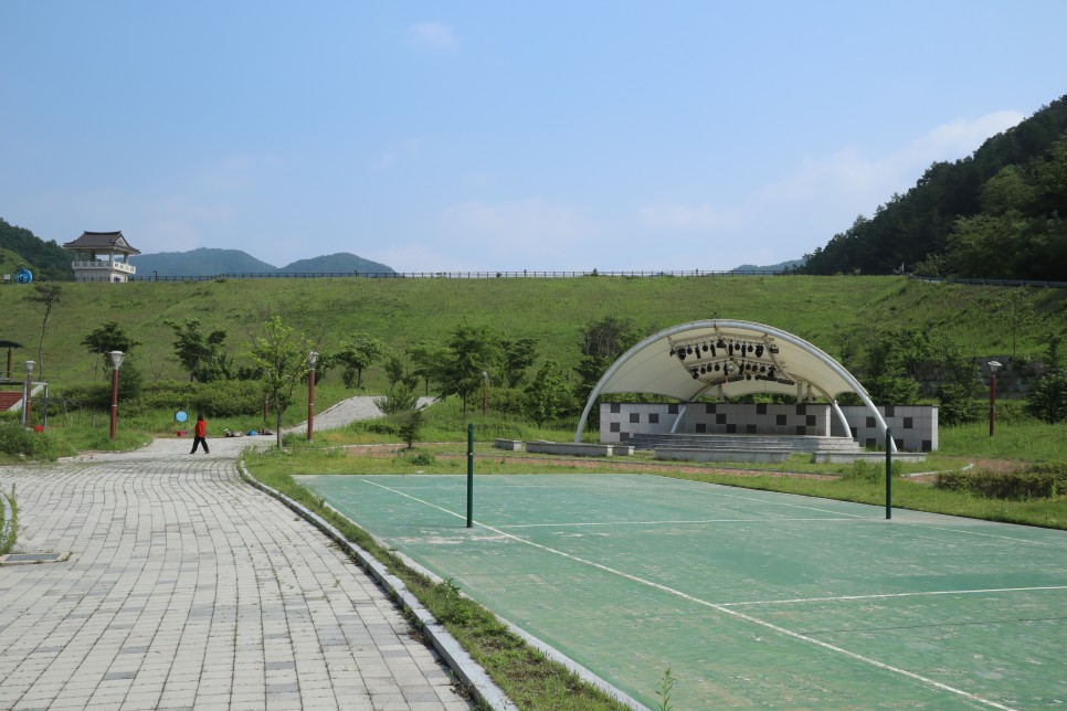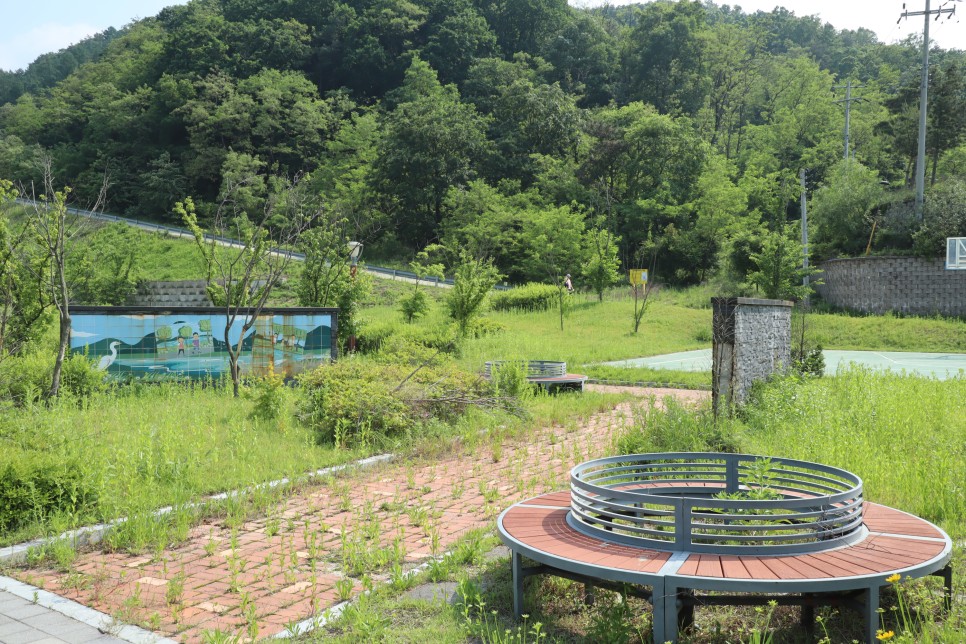 먼저 이 저수지 아래에는 수변복합문화공간이라고 해서 농구장과 족구장, 게이트볼장 및 야외무대도 있지만 이곳은 사람들이 자주 이용을 하지 않는 듯 관리가 잘 안되고 있다는 느낌이 드네요. 어쨌거나 주차는 이곳에 하고 저수지로 올라가시면 됩니다.