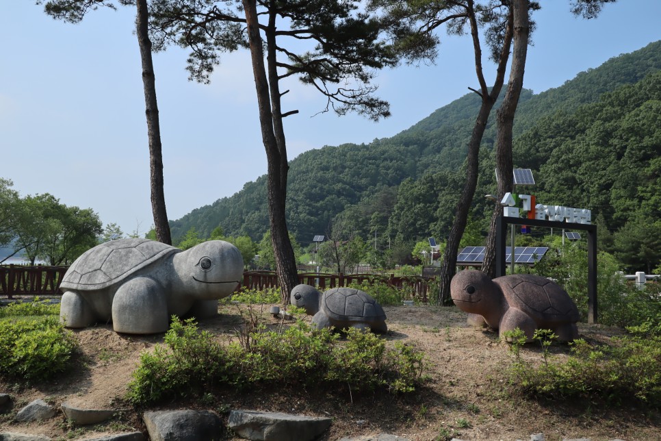 그리고 이 조형물도 보이는데 좌구산이라는 산이 유명하다 보니 거북이 조형물들이 많이 보이는군요.