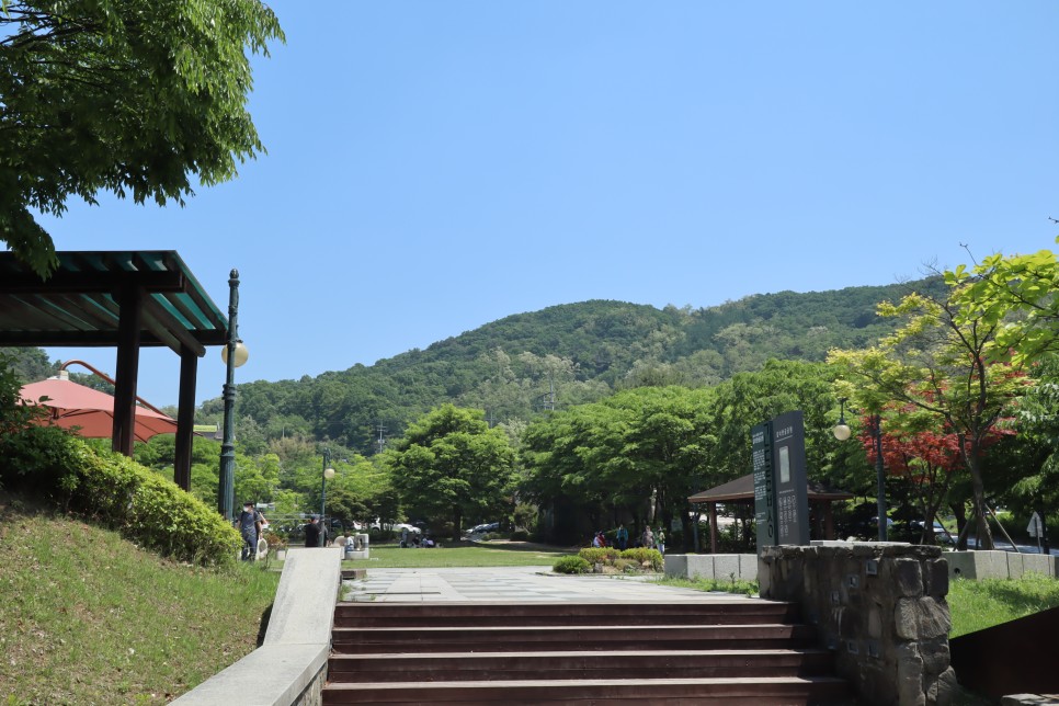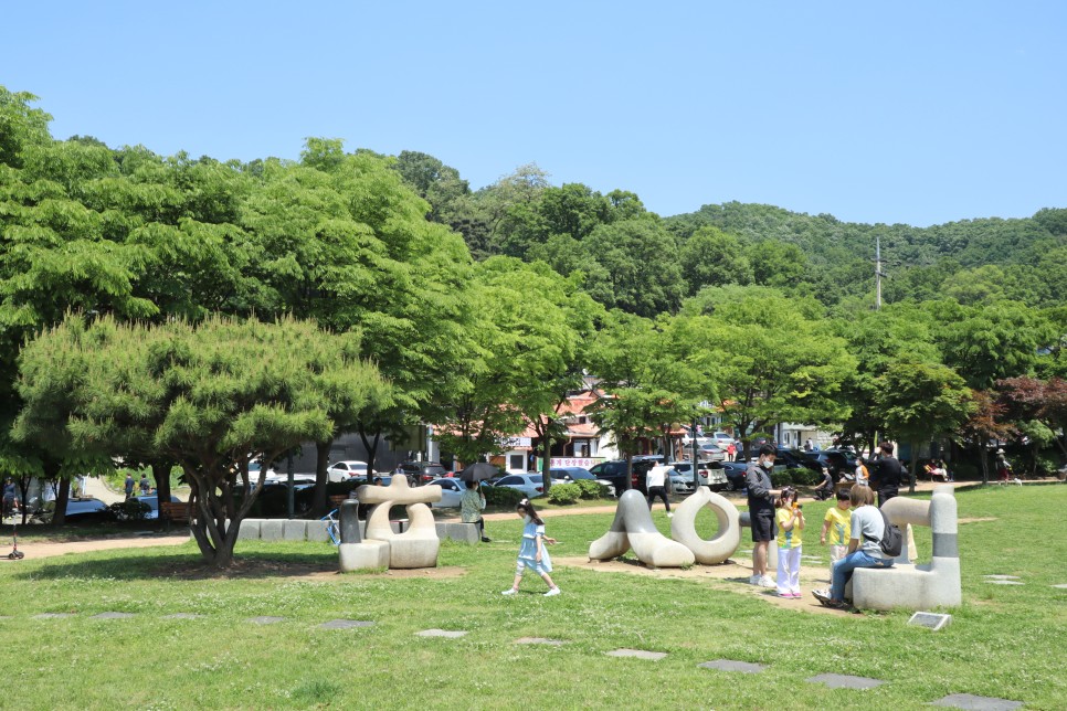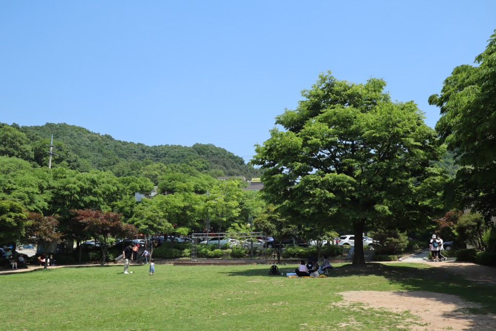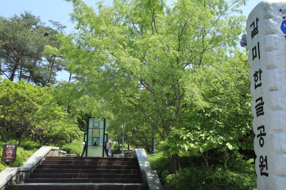 바로 잔디광장이 나타나는데 주변에 나무들이 있어서 쉴만한 곳은 좀 있는 것 같습니다. '갈미'라는 단어는 길이 갈라지다는 의미라고 하구요. 한글학자 이희승 박사를 널리 알리고 한글의 우수성을 지향하는 의미를 담아 만들어진 이름이 갈미한글공원입니다.