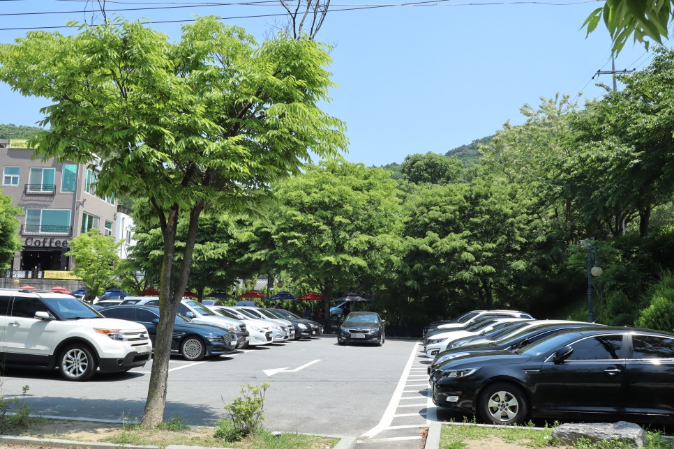 주차는 모락산숲자람터 앞에 꽤 큰 주차장이 있지만 사람들이 많이 찾는 곳이라 주차가 쉽지가 않습니다. 그래서 주변 갓길을 많이 이용을 하십니다. 그런데 공원보다는 주변에 있는 보리밥집 등의 식당을 이용하는 분이 더 많은 것 같네요.