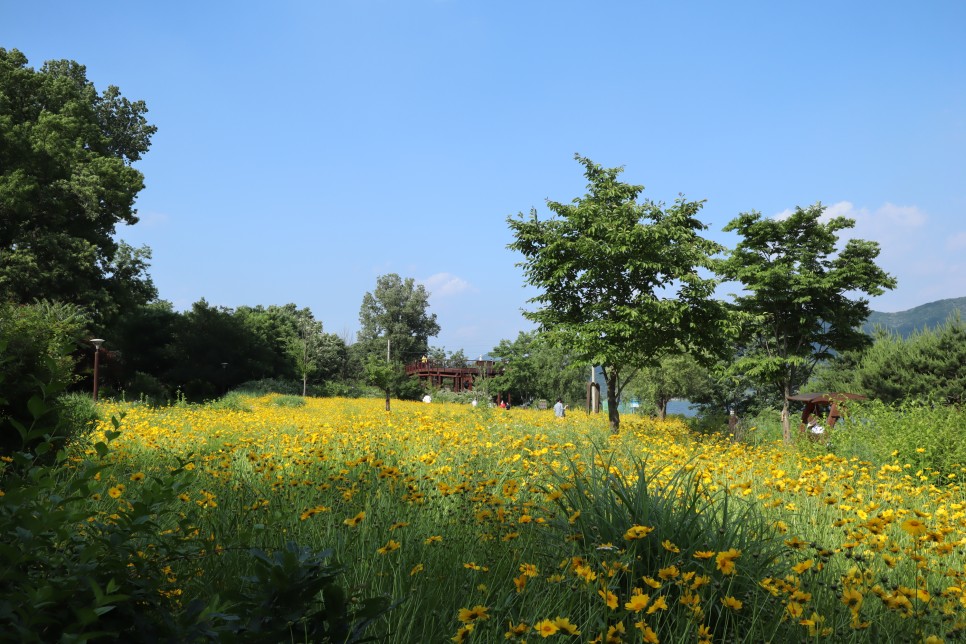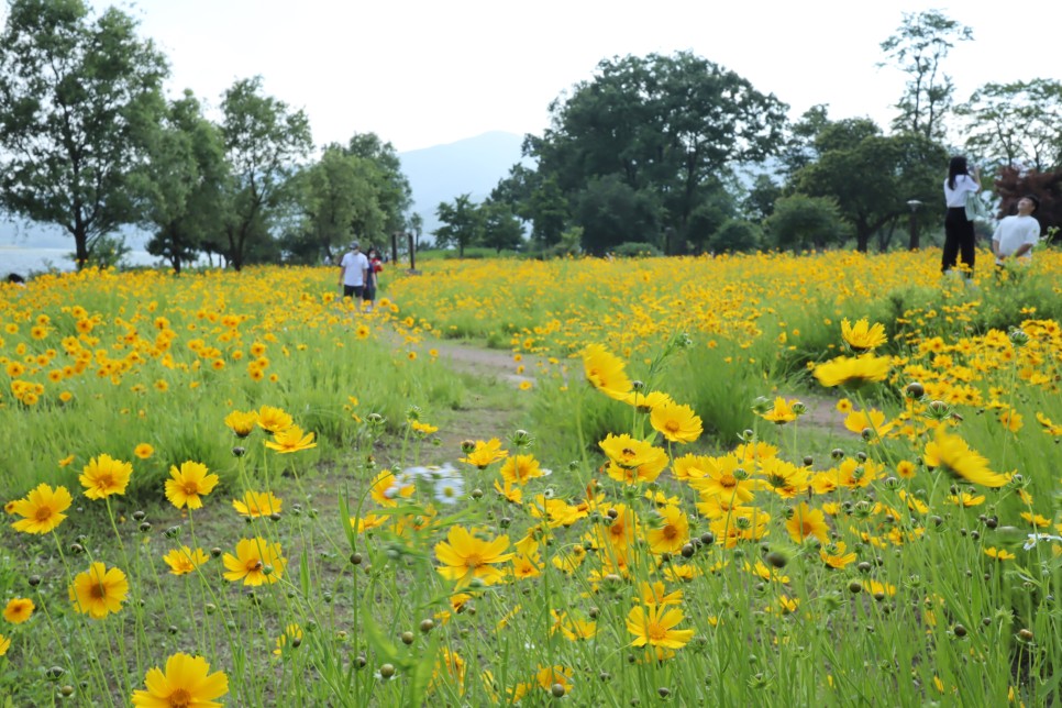 금계국 꽃밭에도 연인들과 여러 가족들이 사진을 찍는 분들이 많이 보입니다. 이 노란색의 꽃밭은 사진을 찍기도 좋은 것 같아요.