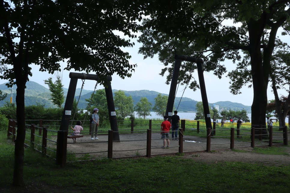 다산생태공원으로 왔는데 오늘은 왼쪽으로 이동을 해서 시계 방향으로 한 바퀴만 돌아보도록 할께요. 이곳에 이런 그네도 보이는군요. 아이들과 이용을 해 보시면 좋지요.