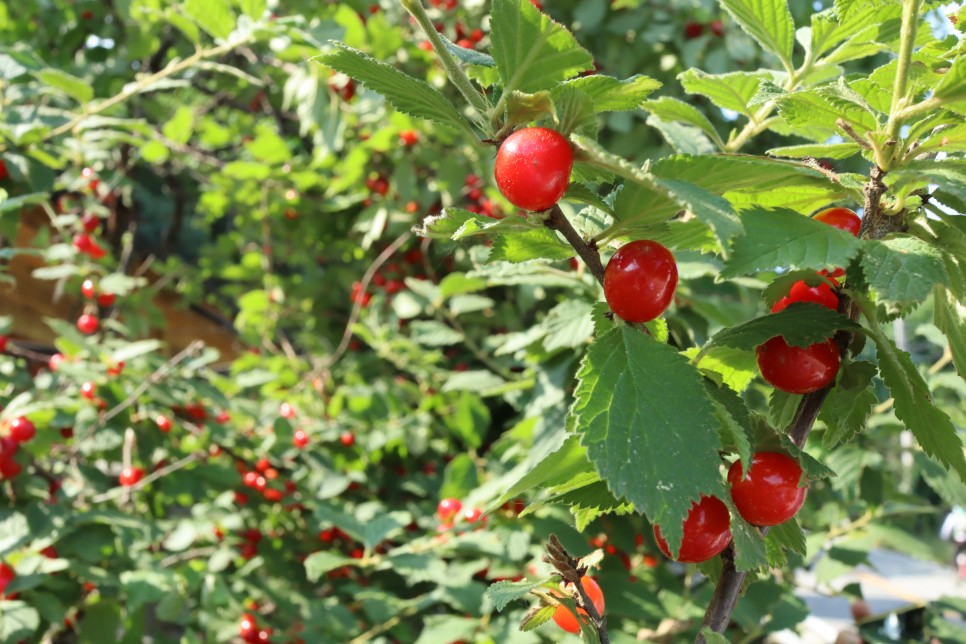 정약용유적지로 가다 보니 길가 담에 이 열매가 있어서 찍어보았는데 앵두나무입니다. 우리가 부를 때는 그냥 앵두라고 하는데 바로 그 열매지요. 어릴 때 시골에서 뒷담 쪽에 있는 나무에서 따 먹었던 기억이 있어서 한 알 먹어보았는데 그때 그 맛이 안 나는군요.