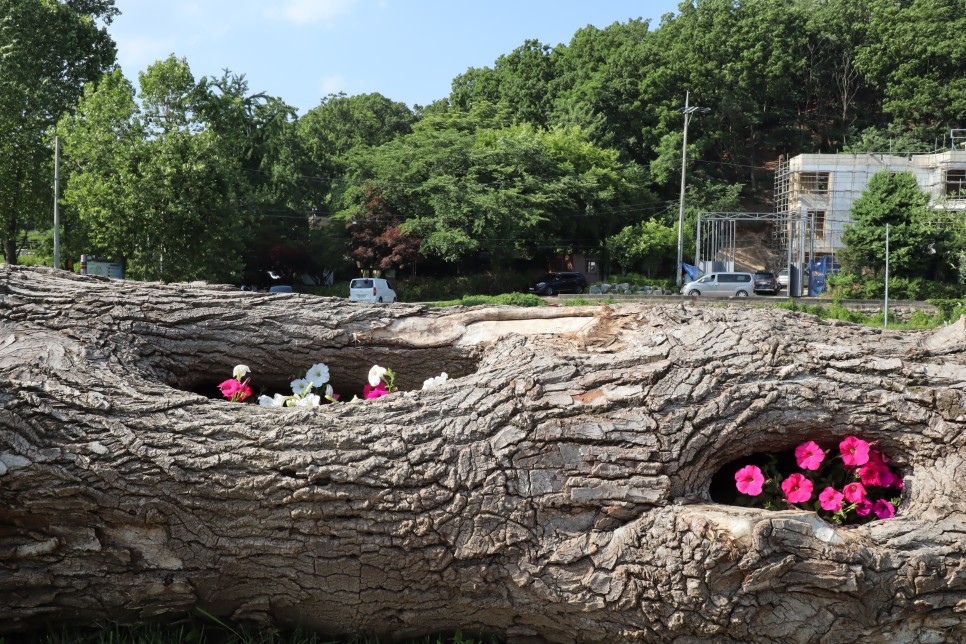 이제 방향을 바꾸어 다시 돌아가는 길인데 고목에 꽃들을 심어 둔 곳이 있어서 잠시 구경을 해 봅니다. 이렇게 꾸며 놓으니 보기가 좋은 것 같아요.