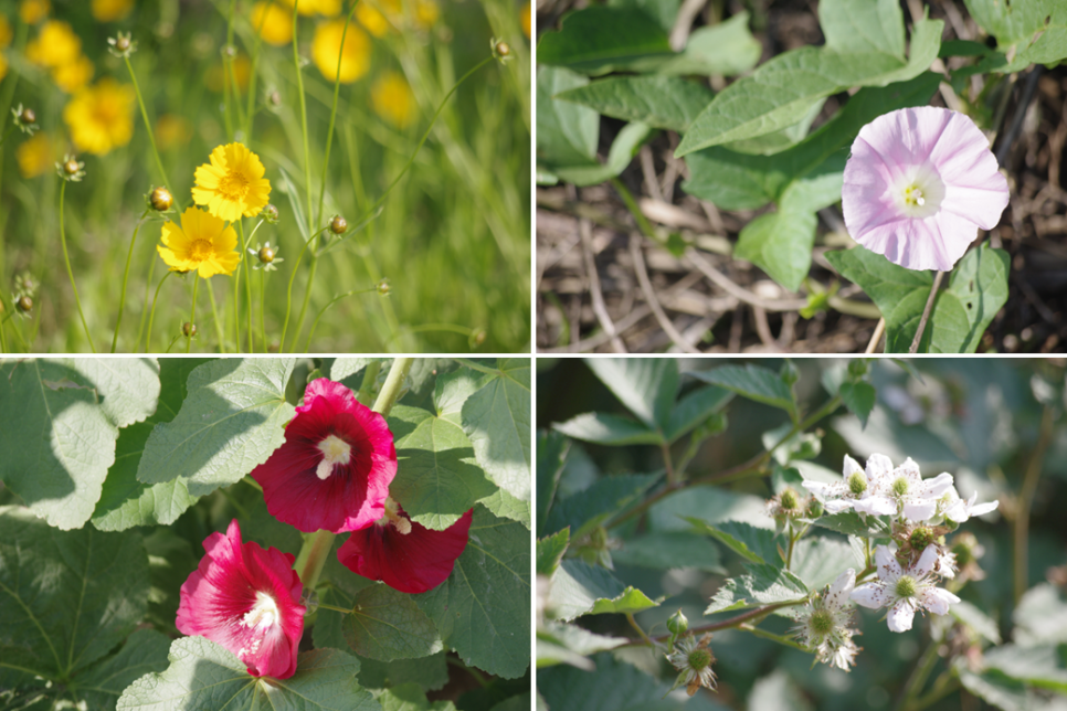 이쁜 꽃들 몇 가지 눈요기 하시라고 올려드립니다. 금계국, 메꽃, 접시꽃, 딸기꽃입니다. 딸기는 많이 드셔 보셨을 텐데 꽃은 보지 못한 분이 있을 것 같아요.