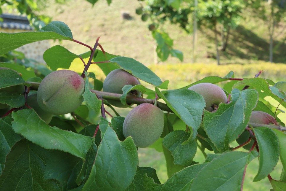 여유당을 나와 우측의 산으로 올라가는 계단을 이용해서 선생의 묘로 가 봅니다. 가는 길에 보니 열매가 보이는데 이건 매실일까요 개복숭아일까요? 매실에 개복숭아를 속여서 파는 분들이 있을 정도로 너무 비슷한 열매라고 하는데 구분이 힘이 드네요. 색상으로 봐서는 개복숭아일것 같아요.