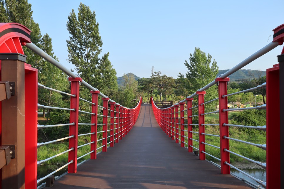 출렁다리의 색상이 꽤 좋습니다. 붉은색을 사용해서 그런지 멋져 보입니다.