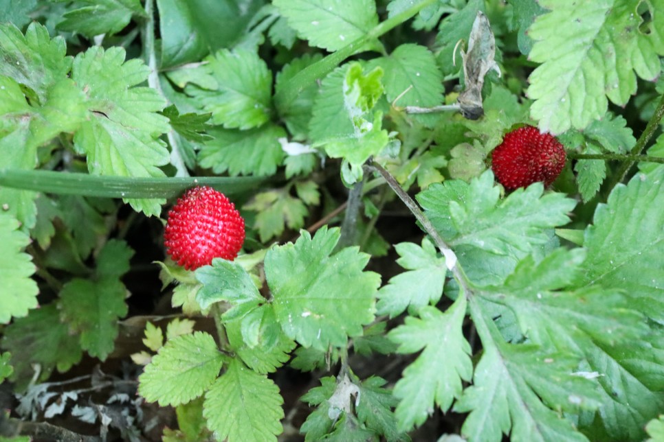 진천종박물관로 가는 길은 산수동산 아래쪽으로 가는 것이 좋은데 저는 주변에 있는 산길을 따라서 갔습니다. 가는 중에 뱀딸기가 보여서 찍은 사진이지요. 뱀딸기는 뱀이 먹는 것은 아니구 그냥 그렇게 불린다고 하는데 먹으면 씹히는 것이 많고 맛이 없어서 가공용으로만 사용을 한다고 하지요.