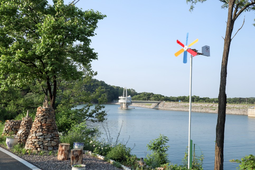 일단 반대편을 걸어볼 생각을 하고 걷다 보니 이런 조형물들이 보이네요. 누군가 만들어 놓은 것인지 아니면 저수지를 관리하는 분들이 만든 것인지는 알 수가 없지만 보기는 좋습니다.