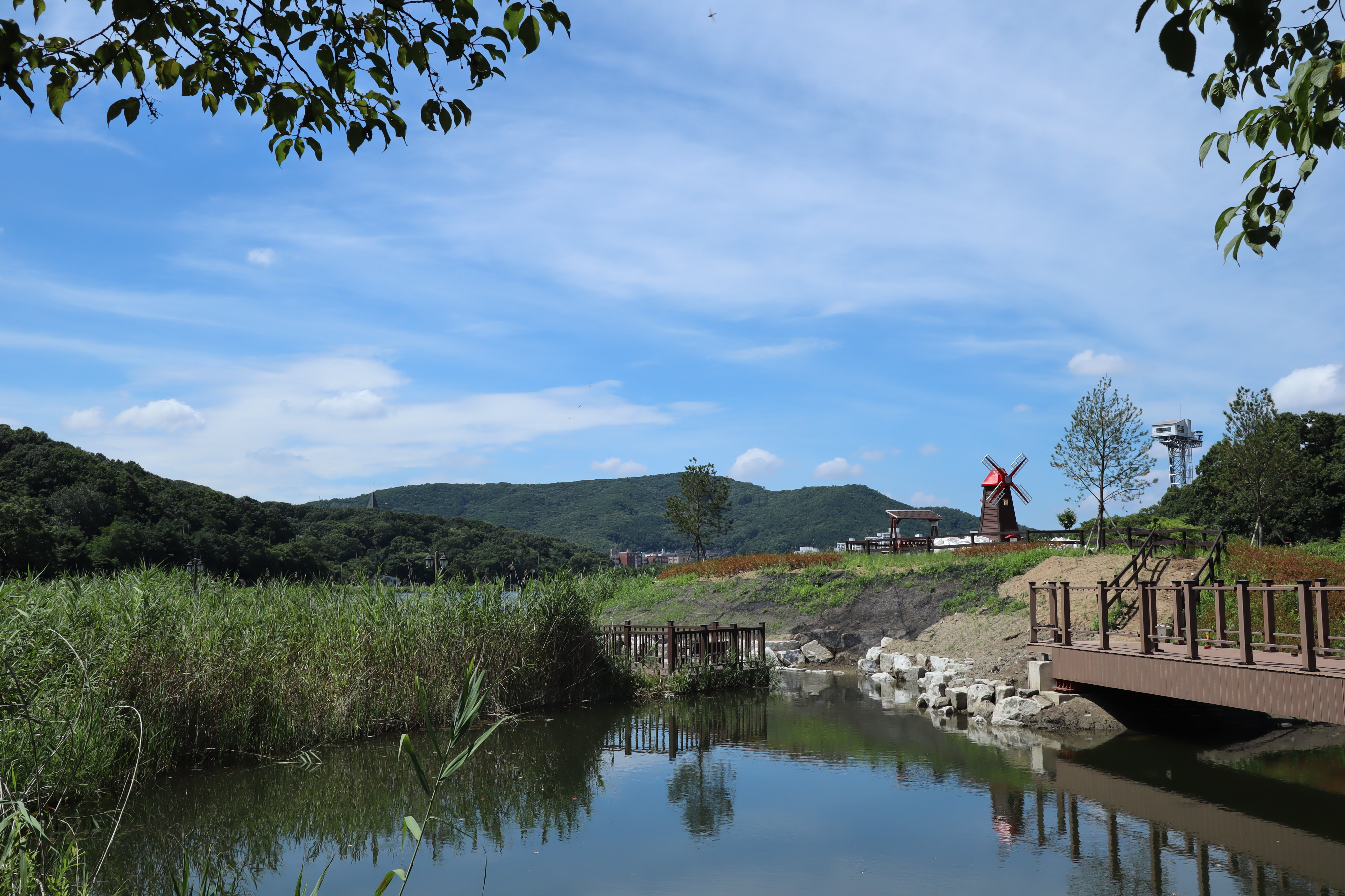 저수지 주변에는 카페도 있고 매점도 하나 있으니 필요시 이용을 하시면 되구요, 저수지 한쪽에는 풍차 조형물과 함께 작은 섬을 만들어 놓았는데 주변에 핑크뮬리 같은 꽃들도 심어 두었지만 봄이 아니니 볼 수는 없을 것 같아요. 그래도 저수지 주변에 에키네시아나 참나리꽃, 능소화 등도 피어 있어서 구경하는 재미는 있더라구요.