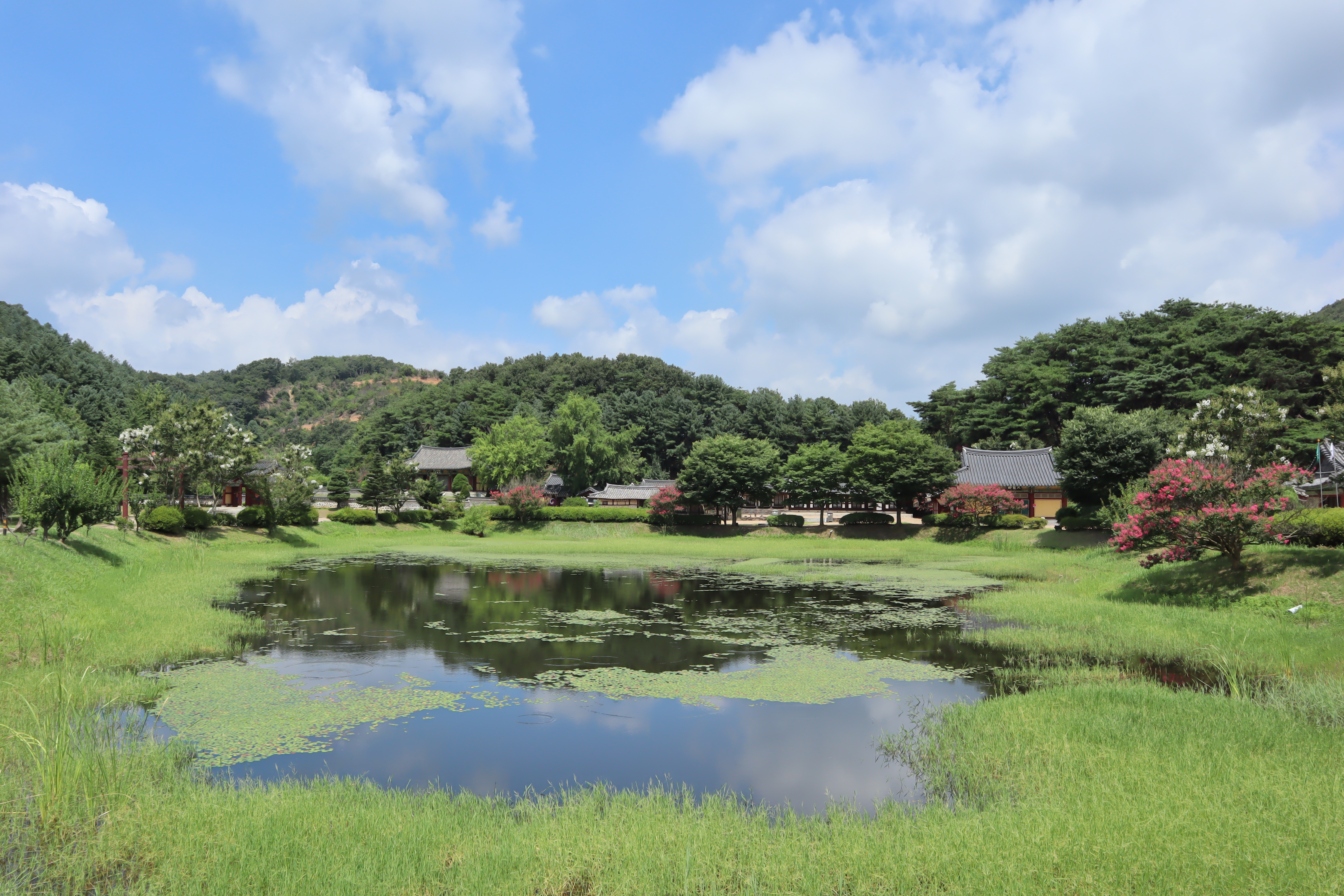 여름에는 흰색과 분홍색의 배롱나무꽃을 구경하기에도 좋은 곳이니 한번 들러보시며 좋습니다. 특히 연못에서 보는 풍경은 너무 아름답고 멋진 모습이라 한참을 보고 있게 되더라구요.
