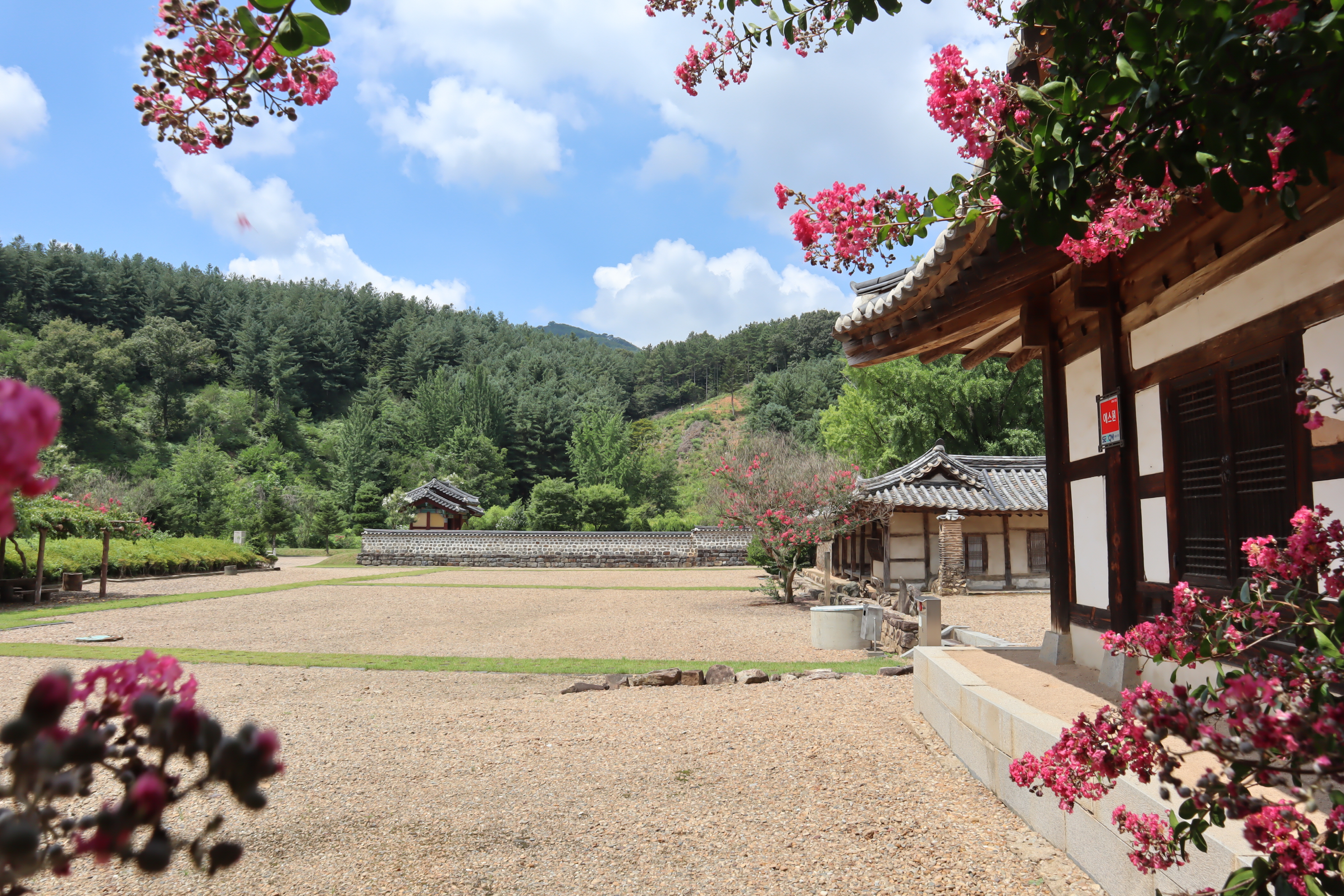 이곳은 주차장도 작지 않은 곳으로 입구를 들어가면 좌우로 배롱나무들도 많이 보이는 곳이라 배롱나무꽃을 구경하기에도 좋은 곳입니다. 아무래도 한옥과 잘 어울리는 꽃이다 보니 충남 지역에 이렇게 구경을 하기 좋은 곳들이 많이 있지요.