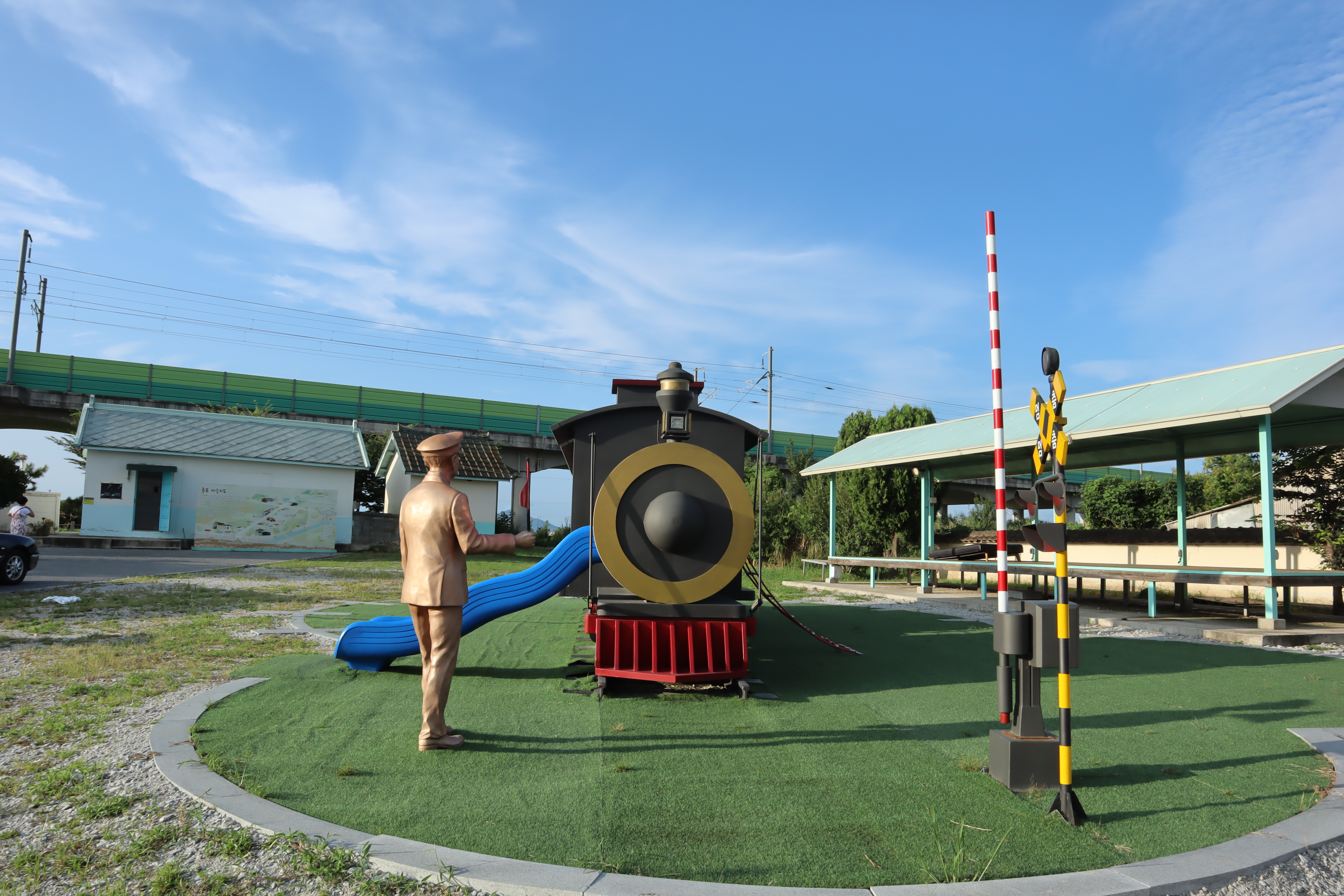 주차장도 크지를 않아서 역 앞에 적당히 주차를 해야 하는데 역 바로 앞쪽에 열차 모양의 조형물을 만들어 두고 아이들도 이용을 할 수 있게 미끄럼틀처럼 만들어 두었더라구요.