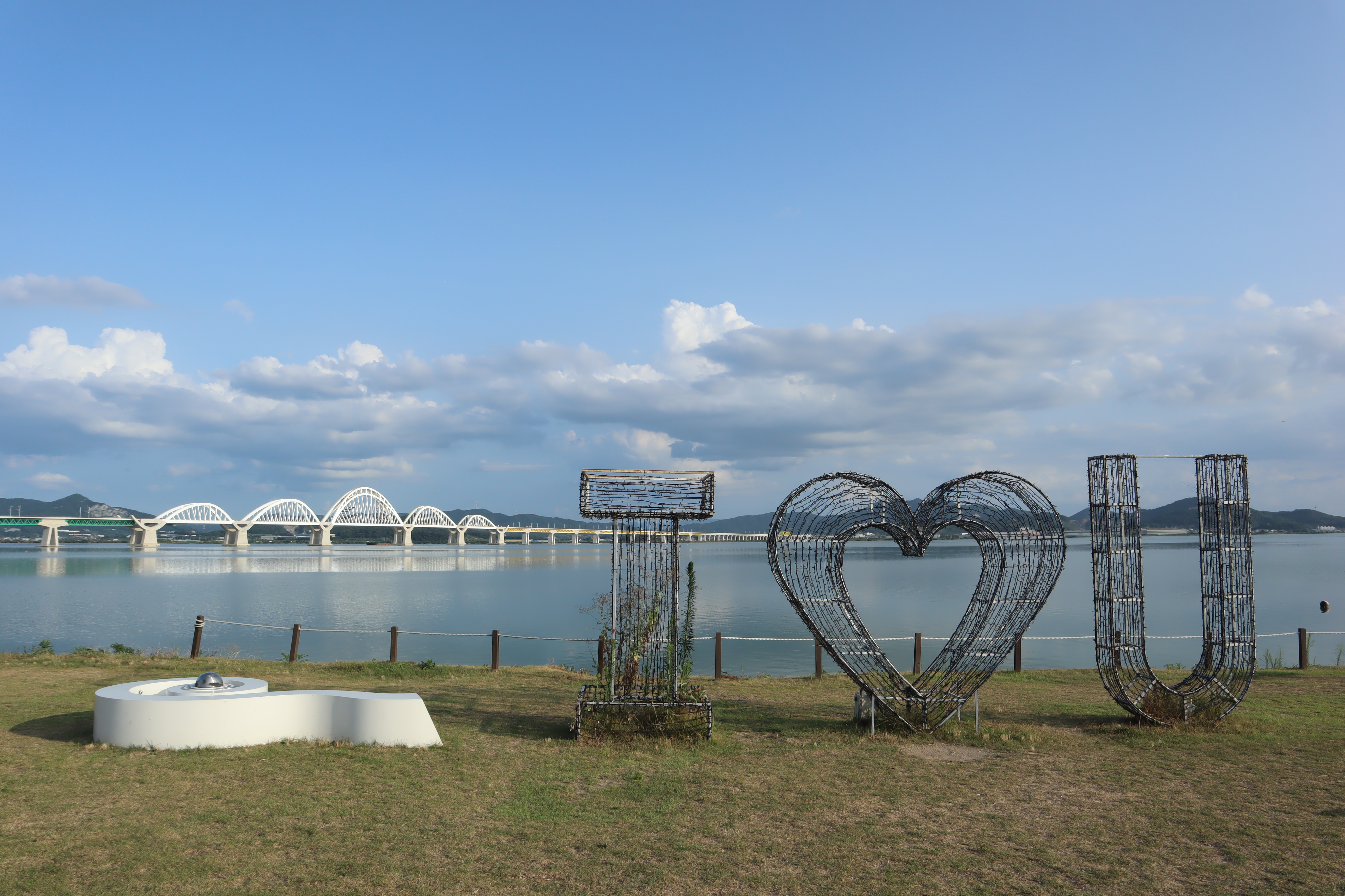 이제 모래톱공원으로 이동을 해보면 주변에 여러 가지 모양의 포토존아 마련이 되어 있어서 아산호를 배경으로 구경을 하기에도 좋습니다. 어떤 조형물이 가장 마음에 들지는 모르겠지만 선택을 해서 사진을 찍으시면 좋지요.