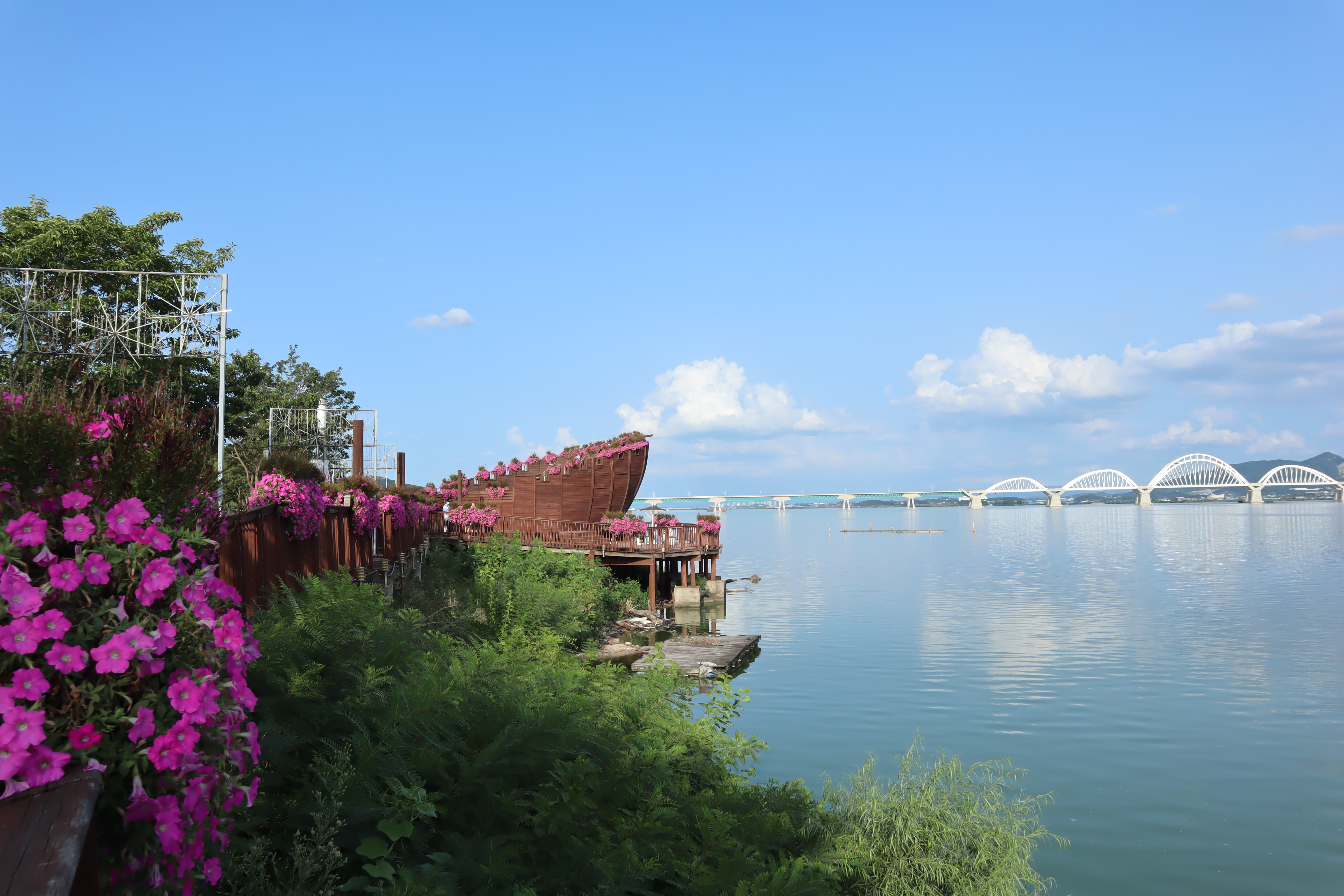 일단 관광안내소에서 먼저 주변을 구경을 하는데 아산호로 보이는 풍경이 무척 좋은 곳입니다. 다리들도 보이고 하늘과 물이 함께 만나는 듯한 모습을 볼 수가 있어서 강에서만 즐길 수 있는 독특한 모습을 감상할 수가 있지요.